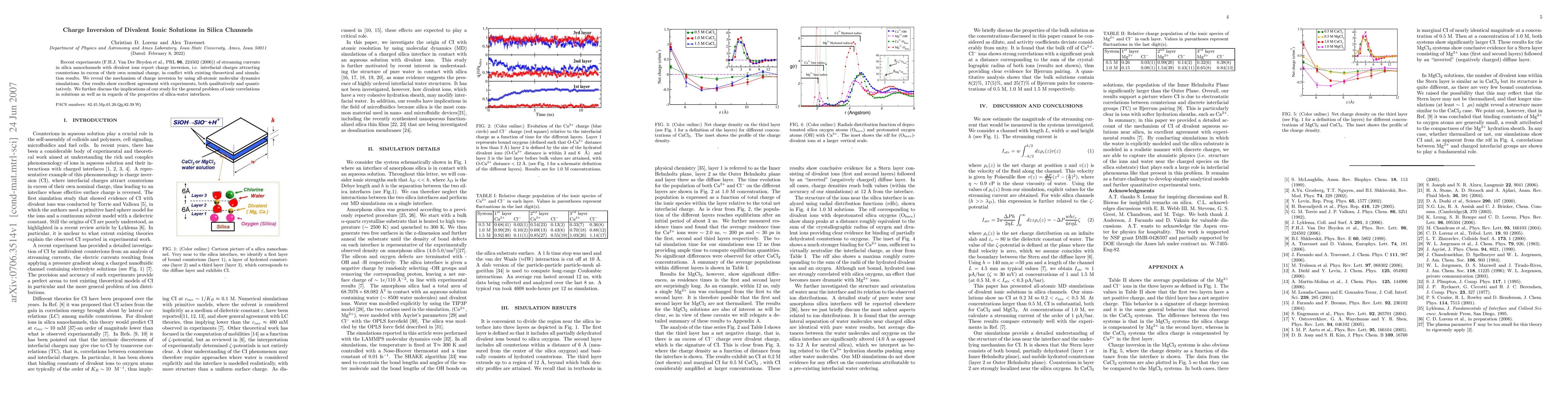 This paper explains the mechanism behind charge inversion observed in silica nanochannels with divalent ions, using all-atomic molecular dynamics simulations that align with experimental data. The study highlights the implications for ionic correlations in solutions and the properties of silica-water interfaces.