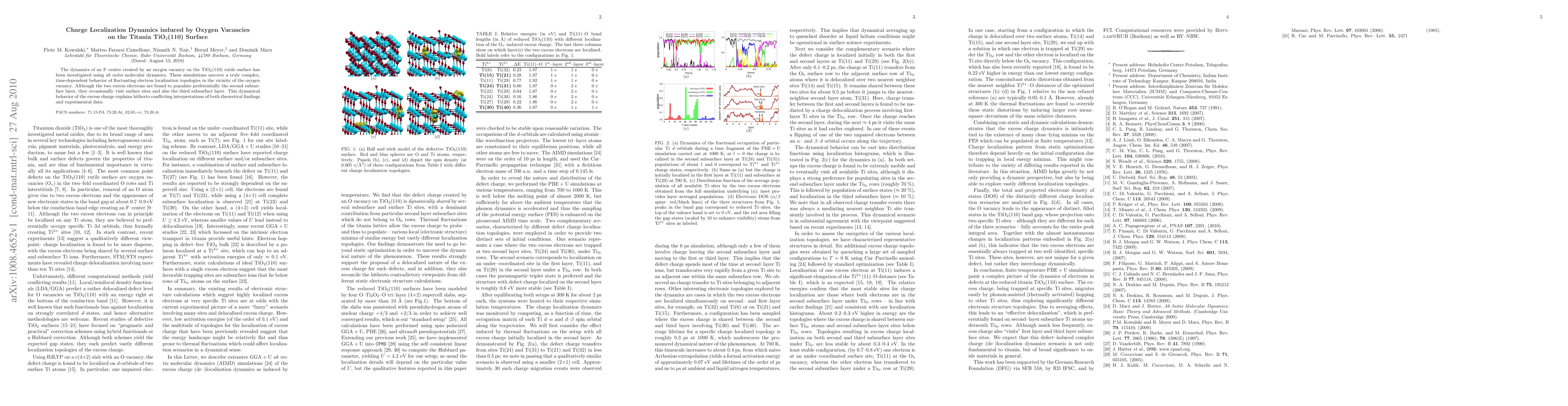 The dynamics of an F--center created by an oxygen vacancy on the $\mathrm{TiO_{2}(110)}$ rutile surface has been investigated using {\it ab initio} molecular dynamics. These simulations uncover a truly complex, time-dependent behavior of fluctuating electron localization topologies in the vicinity of the oxygen vacancy. Although the two excess electrons are found to populate preferentially the second subsurface layer, they occasionally visit surface sites and also the third subsurface layer. This dynamical behavior of the excess charge explains hitherto conflicting interpretations of both theoretical findings and experimental data.