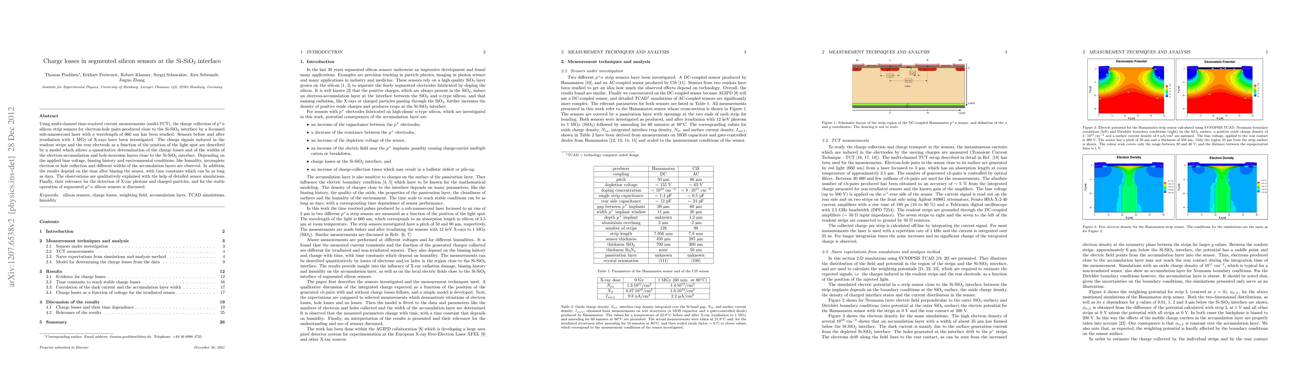 This research uses multi TCT to study charge collection in silicon strip sensors near the Si-SiO2 interface, finding significant charge losses and varying accumulation layer widths due to factors like bias voltage, history, humidity, and time post-biasing. Results are explained via sensor simulations, with implications for X-ray and particle detection in segmented silicon sensors.