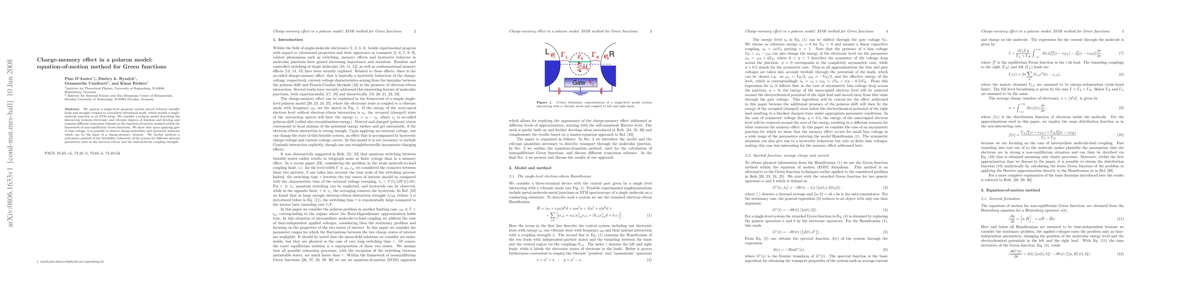 We analyze a single-level quantum system placed between metallic leads and strongly coupled to a localized vibrational mode, which models a singlemolecule junction or an STM setup. We consider a polaron model describing the interaction between electronic and vibronic degrees of freedom and develop and examine different truncation schemes in the equation-of-motion method within the framework of non-equilibrium Green functions. We show that upon applying gate or bias voltage, it is possible to observe charge-bistability and hysteretic behavior which can be the basis of a charge-memory element. We further perform a systematic analysis of the bistability behaviour of the system for different internal parameters such as the electron-vibron and the lead-molecule coupling strength.