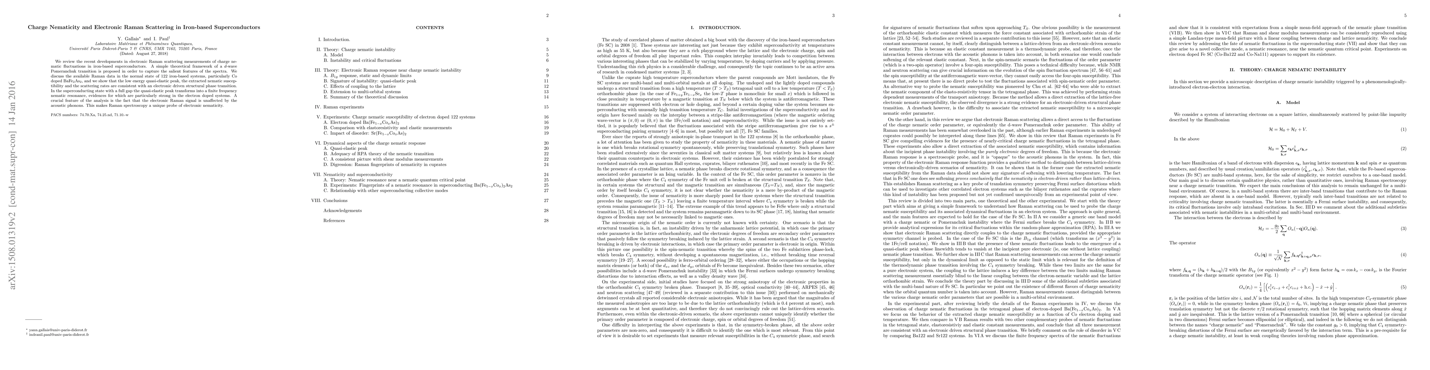 Summary: This paper reviews recent electronic Raman scattering studies of charge nematicity in iron-based superconductors, proposing a $d$-wave Pomeranchuk transition model. It highlights consistent Raman data from Co-doped BaFe$_2$As$_2$, showing the quasi-elastic peak transforms into a finite frequency nematic resonance in the superconducting state, underscoring Raman spectroscopy's unique capability to probe electronic nematicity without acoustic phonon interference.
