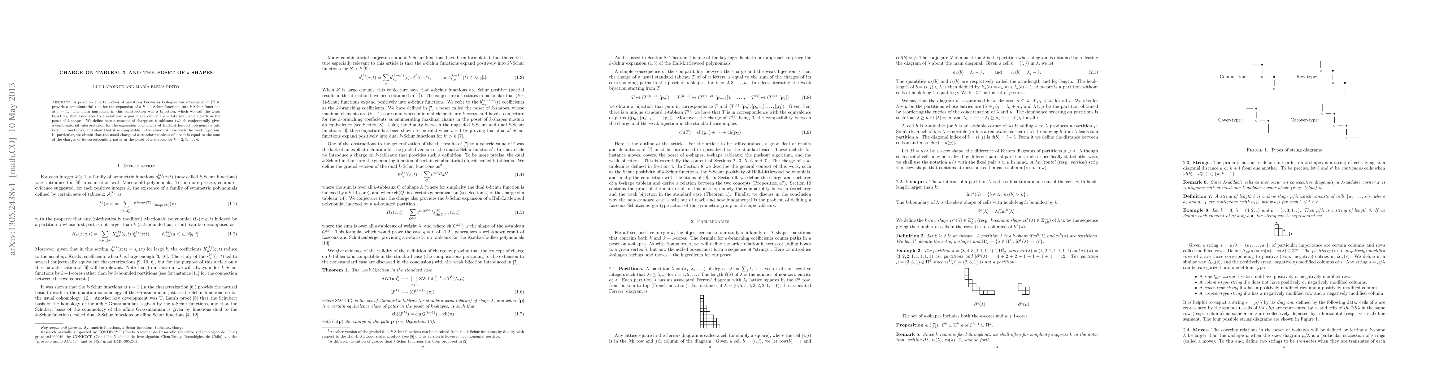 A poset on a certain class of partitions known as k-shapes was recently introduced to provide a combinatorial rule for the expansion of a (k-1)-Schur functions into k-Schur functions at t=1. The main ingredient in this construction was a bijection, which we call the weak bijection, that associates to a k-tableau a pair made out of a (k-1)-tableau and a path in the poset of k-shapes. We define here a concept of charge on k-tableaux (which conjecturally gives a combinatorial interpretation for the expansion coefficients of Hall-Littlewood polynomials into k-Schur functions), and show that it is compatible in the standard case with the weak bijection. In particular, we obtain that the usual charge of a standard tableau of size n is equal to the sum of the charges of its corresponding paths in the poset of k-shapes, for k=2,3...n.
