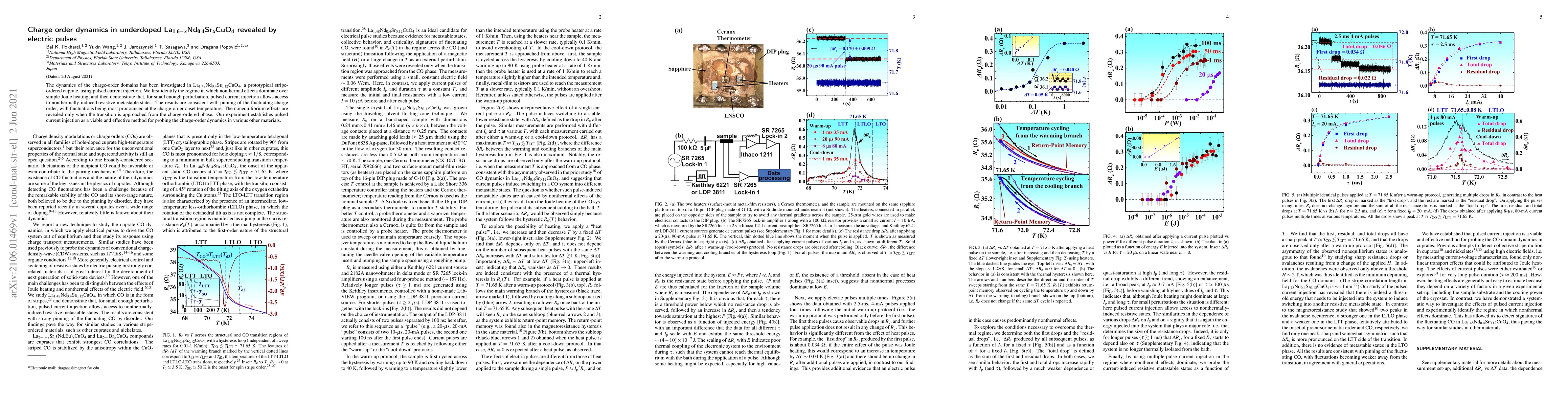 The dynamics of the charge-order domains has been investigated in La$_{1.48}$Nd$_{0.4}$Sr$_{0.12}$CuO$_{4}$, a prototypical stripe-ordered cuprate, using pulsed current injection. We first identify the regime in which nonthermal effects dominate over simple Joule heating, and then demonstrate that, for small enough perturbation, pulsed current injection allows access to nonthermally-induced resistive metastable states. The results are consistent with pinning of the fluctuating charge order, with fluctuations being most pronounced at the charge-order onset temperature. The nonequilibrium effects are revealed only when the transition is approached from the charge-ordered phase. Our experiment establishes pulsed current injection as a viable and effective method for probing the charge-order dynamics in various other materials.