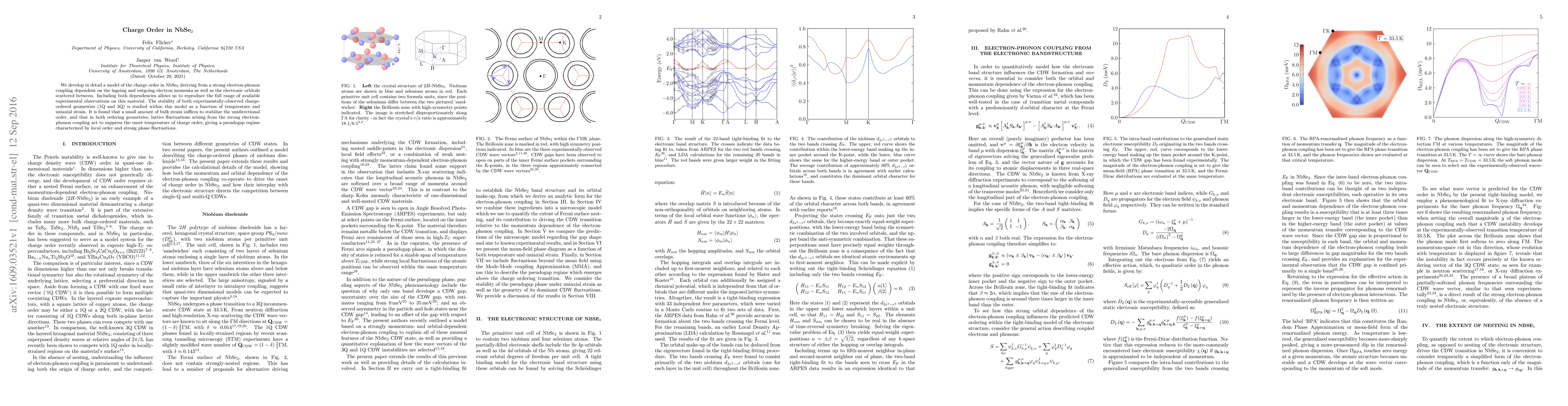 This study models charge order in NbSe$_2$ based on electron-phonon coupling and electronic orbital scattering, explaining experimental observations. It reveals that uniaxial strain can stabilize charge-ordered geometries, while lattice fluctuations reduce the onset temperature of charge order, leading to a pseudogap regime.