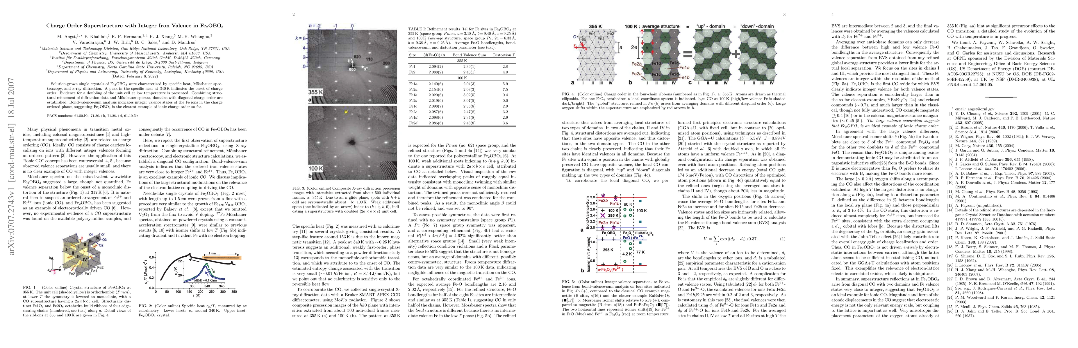 Researchers have discovered a crystal structure in Fe2OBO3 that exhibits integer valence states of iron ions, known as ionic charge order, which is a rare phenomenon in materials science. The study uses specific heat, Mossbauer spectroscopy, and x-ray diffraction to characterize the material and confirms a doubling of the unit cell at low temperature.