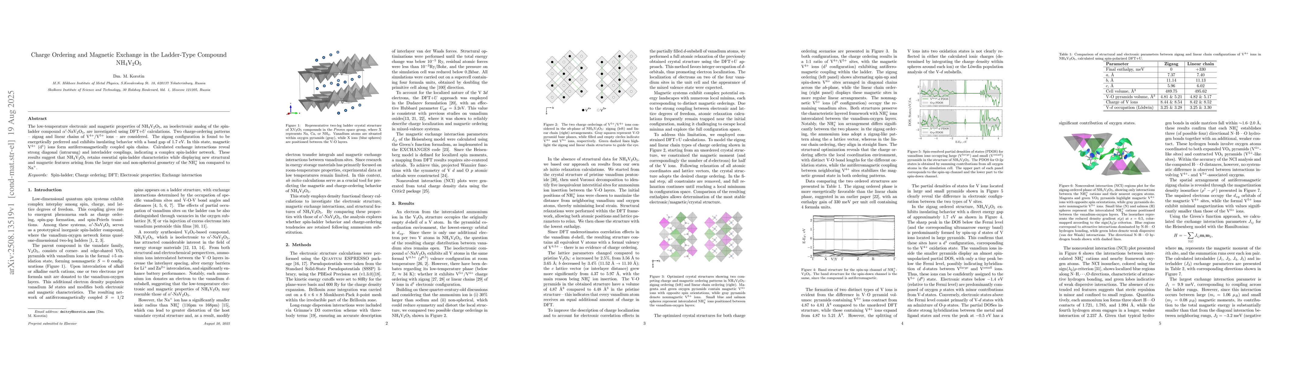 The low-temperature electronic and magnetic properties of NH$_4$V$_2$O$_5$, an isoelectronic analog of the spin-ladder compound $\alpha'$-NaV$_2$O$_5$, are investigated using DFT+$U$ calculations. Two charge-ordering patterns - zigzag and linear chains of V$^{4+}$/V$^{5+}$ ions - are considered. The zigzag configuration is found to be energetically preferred and exhibits insulating behavior with a band gap of 1.7 eV. In this state, magnetic V$^{4+}$ (d$^1$) ions form antiferromagnetically coupled spin chains. Calculated exchange interactions reveal strong diagonal (intrarung) and interladder couplings, indicating a complex spin-ladder network. These results suggest that NH$_4$V$_2$O$_5$ retains essential spin-ladder characteristics while displaying new structural and magnetic features arising from the larger size and non-spherical geometry of the NH$_4^+$ ion compared to Na$^+$.