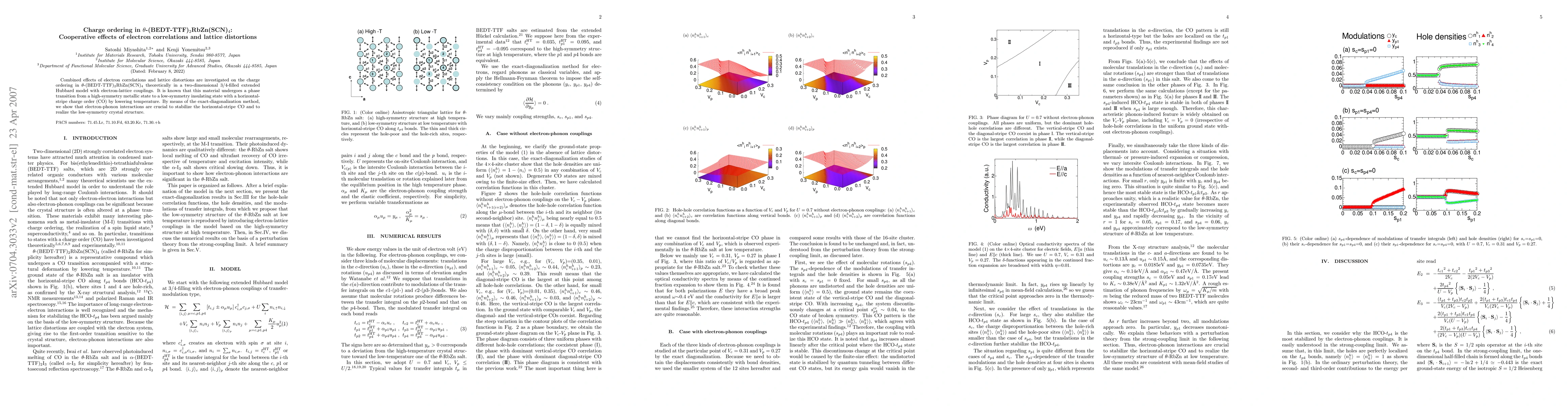 Combined effects of electron correlations and lattice distortions are investigated on the charge ordering in \theta-(BEDT-TTF)2RbZn(SCN)4 theoretically in a two-dimensional 3/4-filled extended Hubbard model with electron-lattice couplings. It is known that this material undergoes a phase transition from a high-symmetry metallic state to a low-symmetry insulating state with a horizontal-stripe charge order (CO) by lowering temperature. By means of the exact-diagonalization method, we show that electron-phonon interactions are crucial to stabilize the horizontal-stripe CO and to realize the low-symmetry crystal structure.