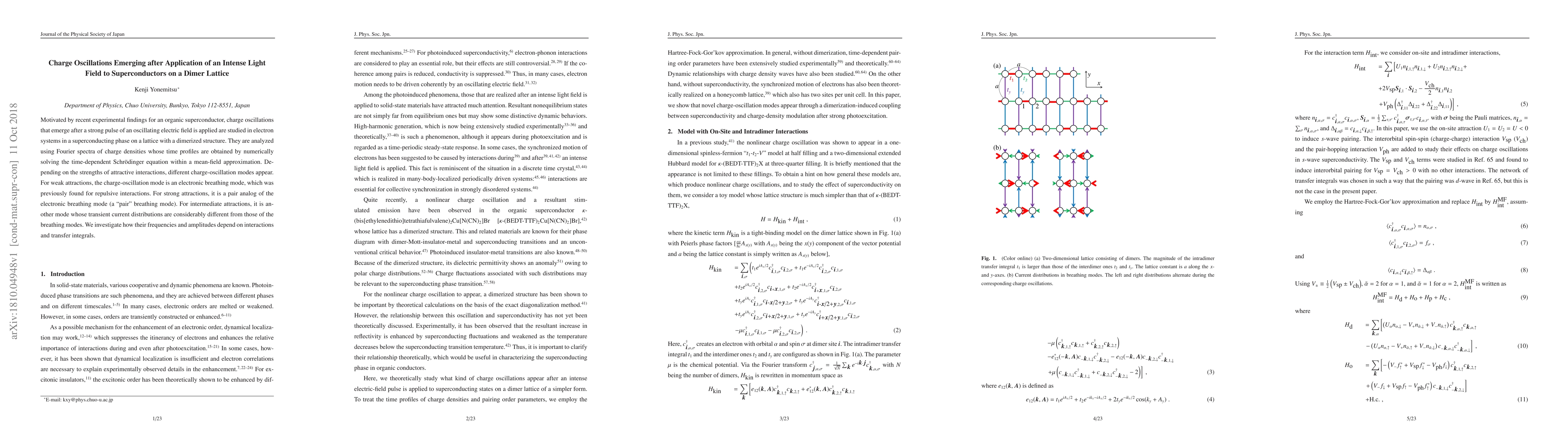 Motivated by recent experimental findings for an organic superconductor, charge oscillations that emerge after a strong pulse of an oscillating electric field is applied are studied in electron systems in a superconducting phase on a lattice with a dimerized structure. They are analyzed using Fourier spectra of charge densities whose time profiles are obtained by numerically solving the time-dependent Schr\"odinger equation within a mean-field approximation. Depending on the strengths of attractive interactions, different charge-oscillation modes appear. For weak attractions, the charge-oscillation mode is an electronic breathing mode, which was previously found for repulsive interactions. For strong attractions, it is a pair analog of the electronic breathing mode (a `pair' breathing mode). For intermediate attractions, it is another mode whose transient current distributions are considerably different from those of the breathing modes. We investigate how their frequencies and amplitudes depend on interactions and transfer integrals.