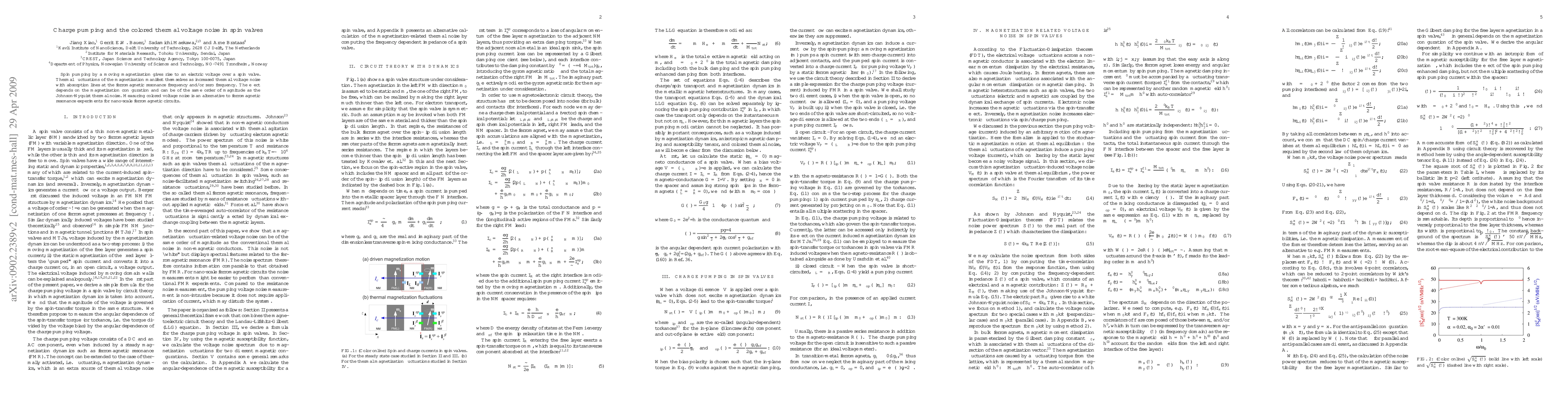 Spin pumping by a moving magnetization gives rise to an electric voltage over a spin valve. Thermal fluctuations of the magnetization manifest themselves as increased thermal voltage noise with absorption lines at the ferromagnetic resonance frequency and/or zero frequency. The effect depends on the magnetization configuration and can be of the same order of magnitude as the Johnson-Nyquist thermal noise. Measuring colored voltage noise is an alternative to ferromagnetic resonance experiments for nano-scale ferromagnetic circuits.