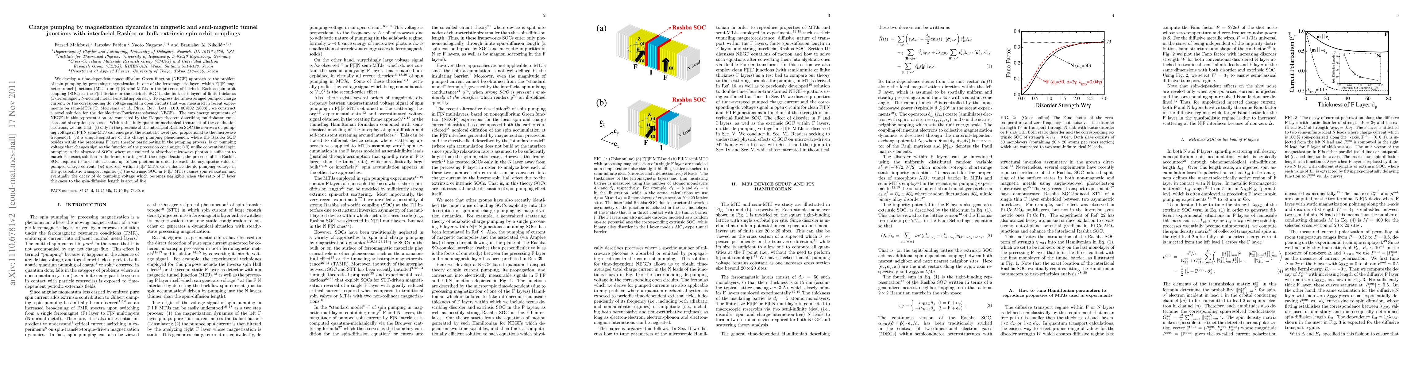 We develop a time-dependent nonequilibrium Green function (NEGF) approach to the problem of spin pumping by precessing magnetization in one of the ferromagnetic layers within F/I/F magnetic tunnel junctions (MTJs) or F/I/N semi-MTJs in the presence of intrinsic Rashba spin-orbit coupling (SOC) at the F/I interface or the extrinsic SOC in the bulk of F layers of finite thickness (F-ferromagnet; N-normal metal; I-insulating barrier). To express the time-averaged pumped charge current, or the corresponding dc voltage signal in open circuits that was measured in recent experiments on semi-MTJs [T. Moriyama et al., Phys. Rev. Lett. 100, 067602 (2008)], we construct a novel solution for the double-time-Fourier-transformed NEGFs. The two energy arguments of NEGFs in this representation are connected by the Floquet theorem describing multiphoton emission and absorption processes. Within this fully quantum-mechanical treatment of the conduction electrons, we find that: (i) only in the presence of the interfacial Rashba SOC the non-zero dc pumping voltage in F/I/N semi-MTJ can emerge at the adiabatic level (i.e., proportional to microwave frequency); (ii) a unique signature of this charge pumping phenomenon, which disappears if Rashba SOC is not located with the precessing F layer, is dc pumping voltage that changes sign as the function of the precession cone angle; (iii) unlike standard spin pumping in the absence of SOCs, where one emitted or absorbed microwave photon is sufficient to match the exact solution in the frame rotating with the magnetization, the presence of the Rashba SOC requires to take into account up to ten photons in order to reach the asymptotic value of pumped charge current; (iv) disorder within F/I/F MTJs can enhance the dc pumping voltage in the quasiballistic transport regime; ...