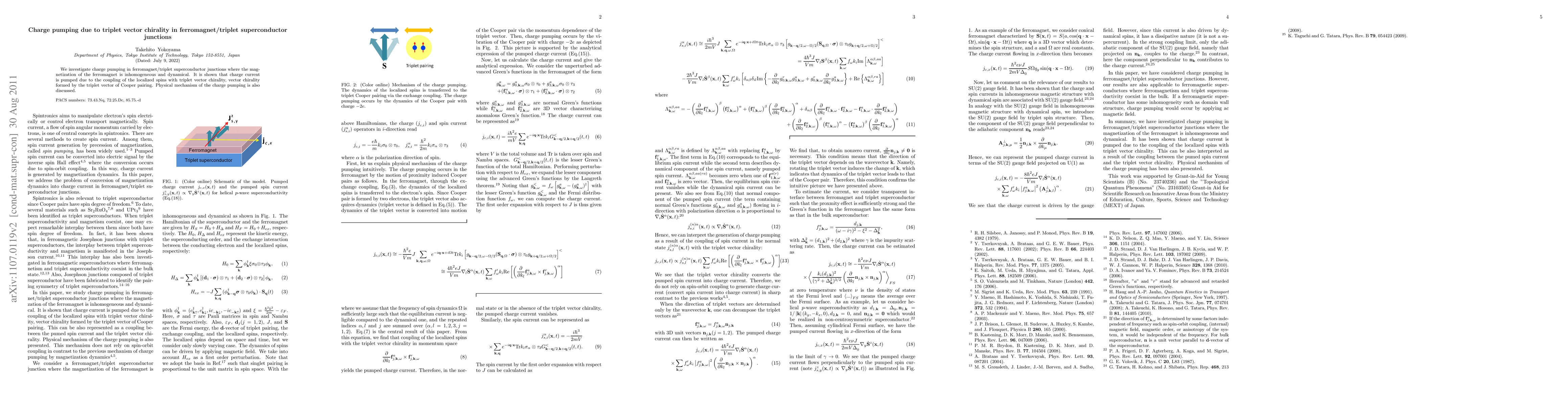 We investigate charge pumping in ferromagnet/triplet superconductor junctions where the magnetization of the ferromagnet is inhomogeneous and dynamical. It is shown that charge current is pumped due to the coupling of the localized spin with triplet vector spin chirality, vector spin chirality formed by the triplet vector of Cooper pairing. Physical mechanism of the charge pumping is also discussed.