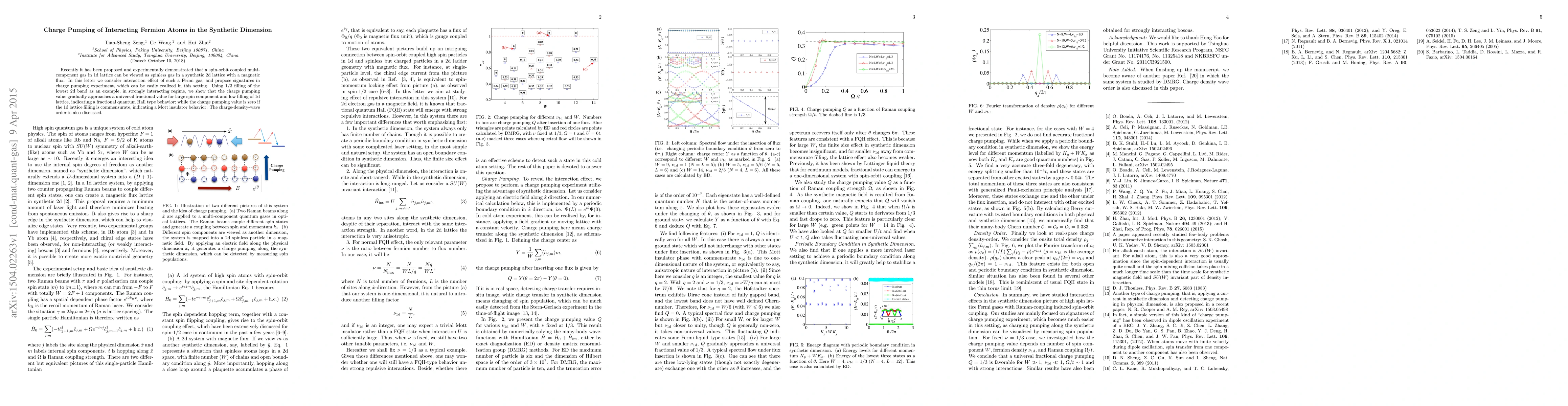 Recently it has been proposed and experimentally demonstrated that a spin-orbit coupled multi-component gas in 1d lattice can be viewed as spinless gas in a synthetic 2d lattice with a magnetic flux. In this letter we consider interaction effect of such a Fermi gas, and propose signatures in charge pumping experiment, which can be easily realized in this setting. Using 1/3 filling of the lowest 2d band as an example, in strongly interacting regime, we show that the charge pumping value gradually approaches a universal fractional value for large spin component and low filling of 1d lattice, indicating a fractional quantum Hall type behavior; while the charge pumping value is zero if the 1d lattice filling is commensurate, indicating a Mott insulator behavior. The charge-density-wave order is also discussed.