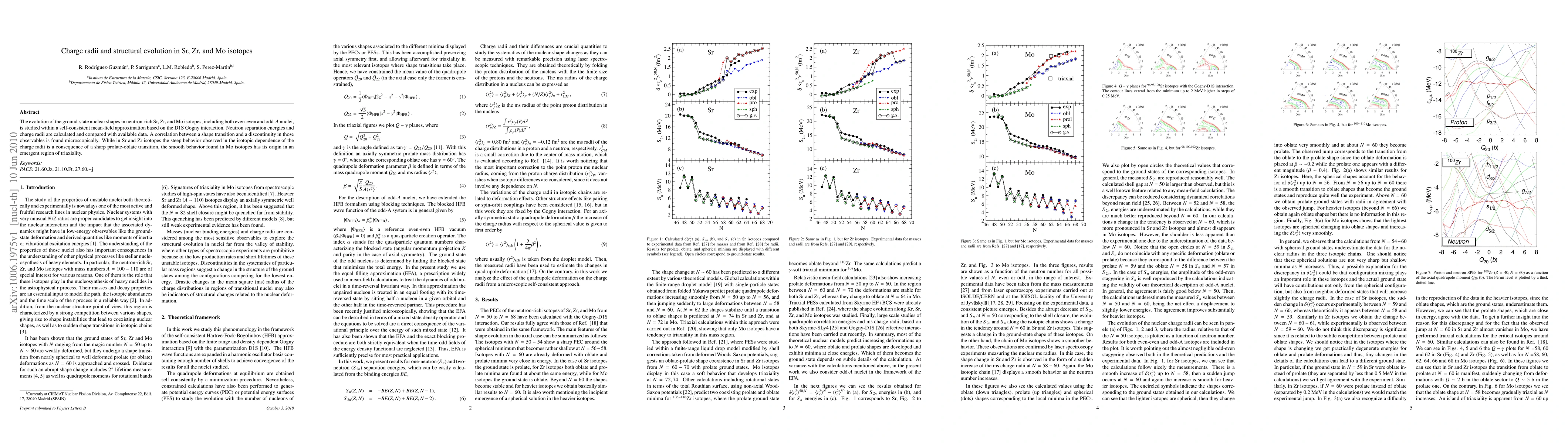 The evolution of the ground-state nuclear shapes in neutron-rich Sr, Zr, and Mo isotopes, including both even-even and odd-A nuclei, is studied within a self-consistent mean-field approximation based on the D1S Gogny interaction. Neutron separation energies and charge radii are calculated and compared with available data. A correlation between a shape transition and a discontinuity in those observables is found microscopically. While in Sr and Zr isotopes the steep behavior observed in the isotopic dependence of the charge radii is a consequence of a sharp prolate-oblate transition, the smooth behavior found in Mo isotopes has its origin in an emergent region of triaxiality.