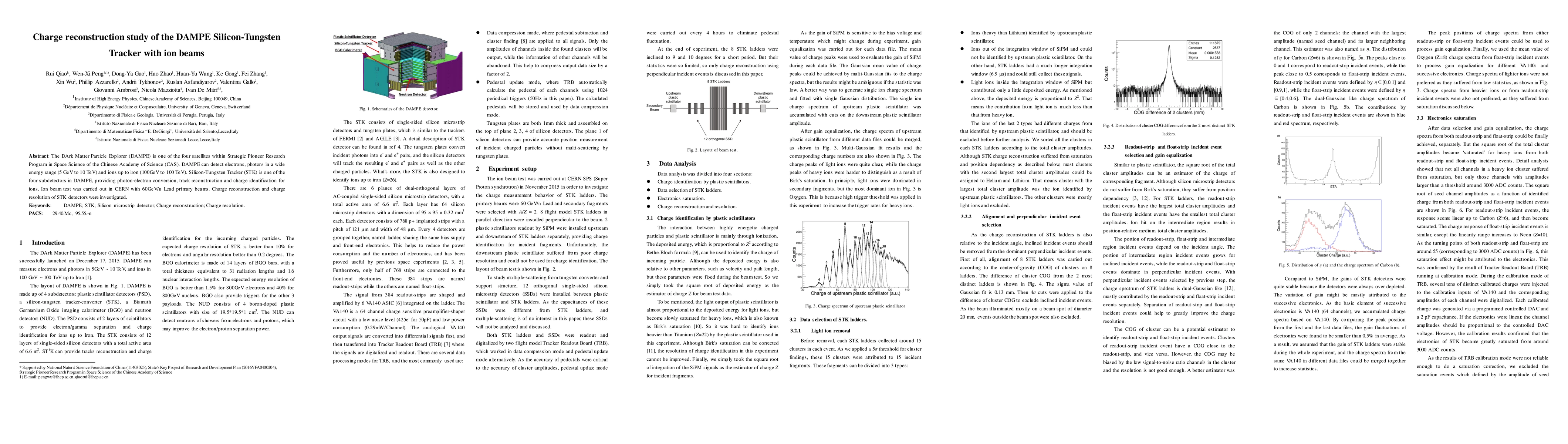 This paper investigates the charge reconstruction capabilities of the DAMPE Silicon-Tungsten Tracker (STK) using ion beams at CERN, focusing on the detector's performance in identifying and resolving ion charges within the framework of the DArk Matter Particle Explorer satellite mission.