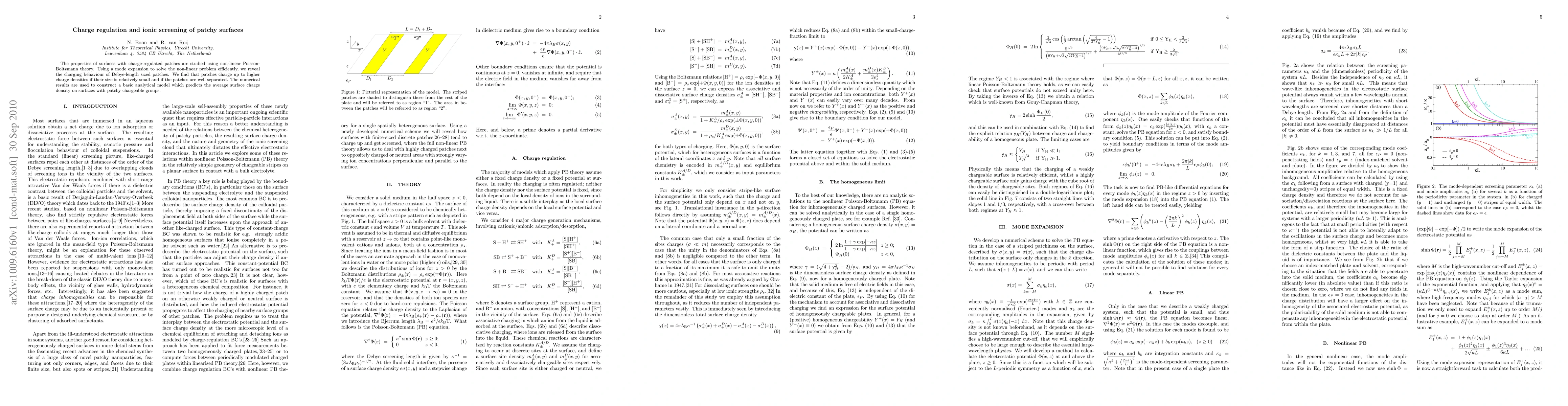 This paper investigates the charging behavior of patchy surfaces using non-linear Poisson-Boltzmann theory, revealing that smaller, well-separated patches charge to higher densities. An analytical model is developed to predict average surface charge density based on these findings.