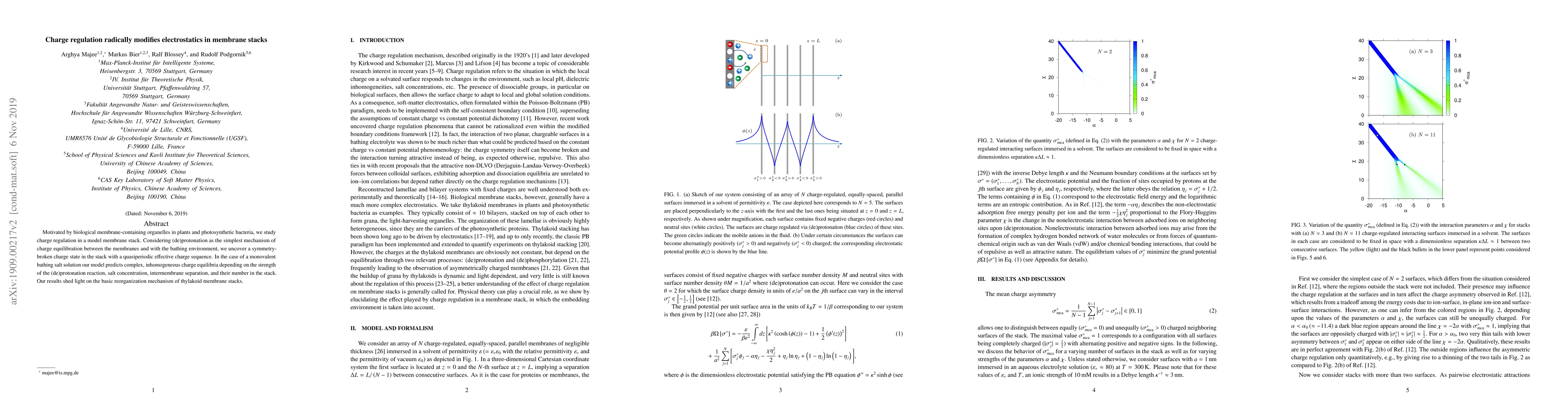 This research investigates charge regulation in membrane stacks inspired by plant and bacterial organelles. It reveals a quasiperiodic charge sequence and complex, inhomogeneous charge equilibria influenced by factors like (de)protonation, salt concentration, and intermembrane separation, offering insights into thylakoid membrane stack reorganization.