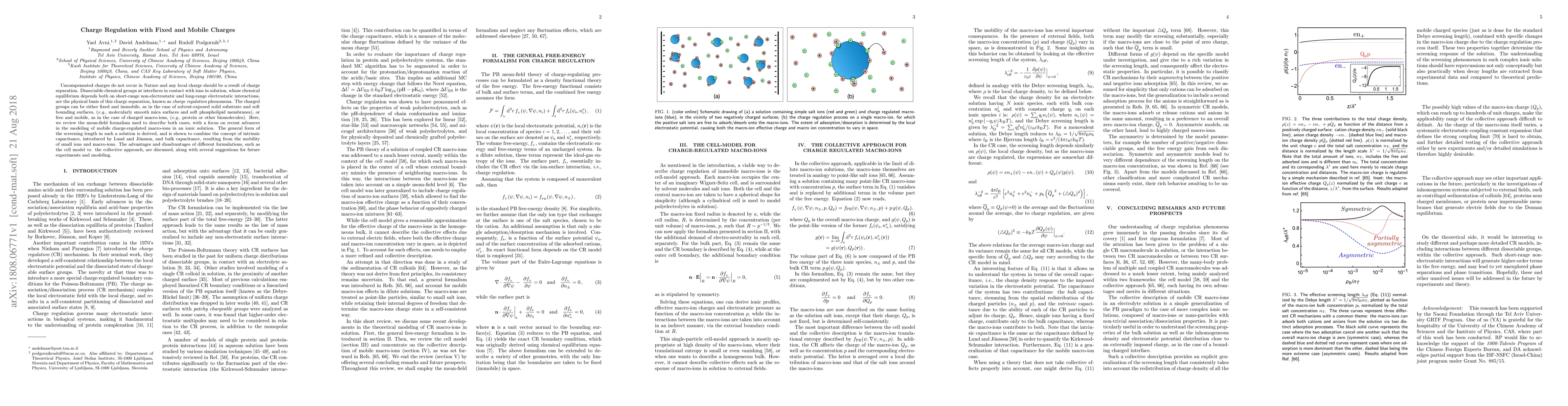 This paper reviews the charge regulation phenomena at interfaces, distinguishing between fixed and mobile charges, and discusses the mean-field formalism used to model these interactions. It highlights recent advances in modeling mobile charge-regulated macro-ions and derives the general form of the screening length, combining intrinsic and bulk capacitance concepts.