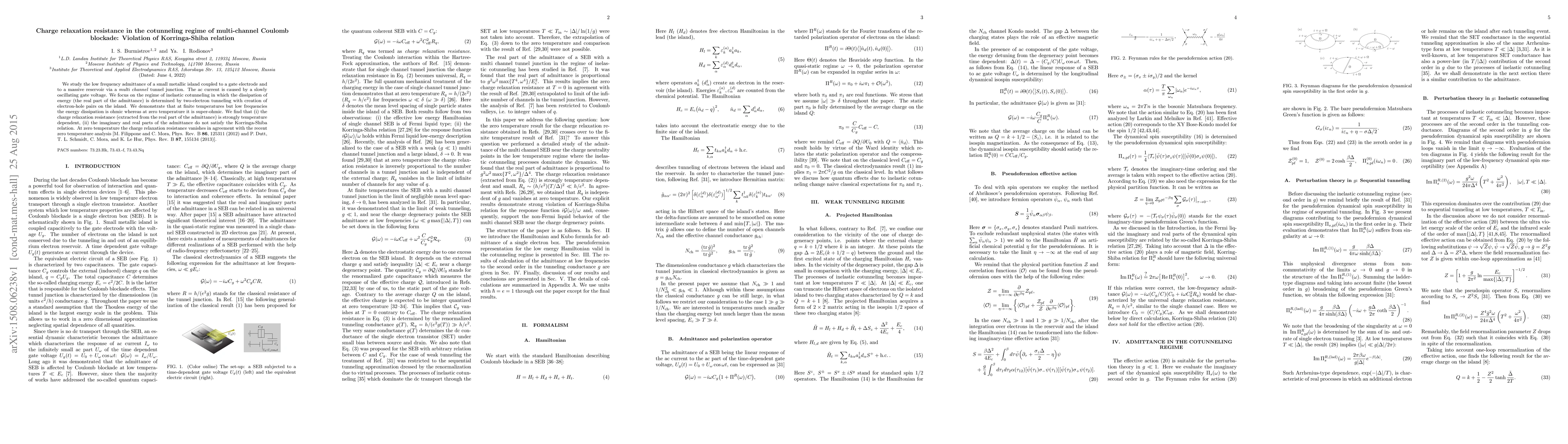 We study the low frequency admittance of a small metallic island coupled to a gate electrode and to a massive reservoir via a \emph{multi channel} tunnel junction. The ac current is caused by a slowly oscillating gate voltage. We focus on the regime of inelastic cotunneling in which the dissipation of energy (the real part of the admittance) is determined by two-electron tunneling with creation of electron-hole pairs on the island. We demonstrate that at finite temperatures but low frequencies the energy dissipation is ohmic whereas at zero temperature it is super-ohmic. We find that (i) the charge relaxation resistance (extracted from the real part of the admittance) is strongly temperature dependent, (ii) the imaginary and real parts of the admittance do not satisfy the Korringa-Shiba relation. At zero temperature the charge relaxation resistance vanishes in agreement with the recent zero temperature analysis [M. Filippone and C. Mora, Phys. Rev. B {\bf 86}, 125311 (2012) and P. Dutt, T. L. Schmidt, C. Mora, and K. Le Hur, Phys. Rev. B {\bf 87}, 155134 (2013)].