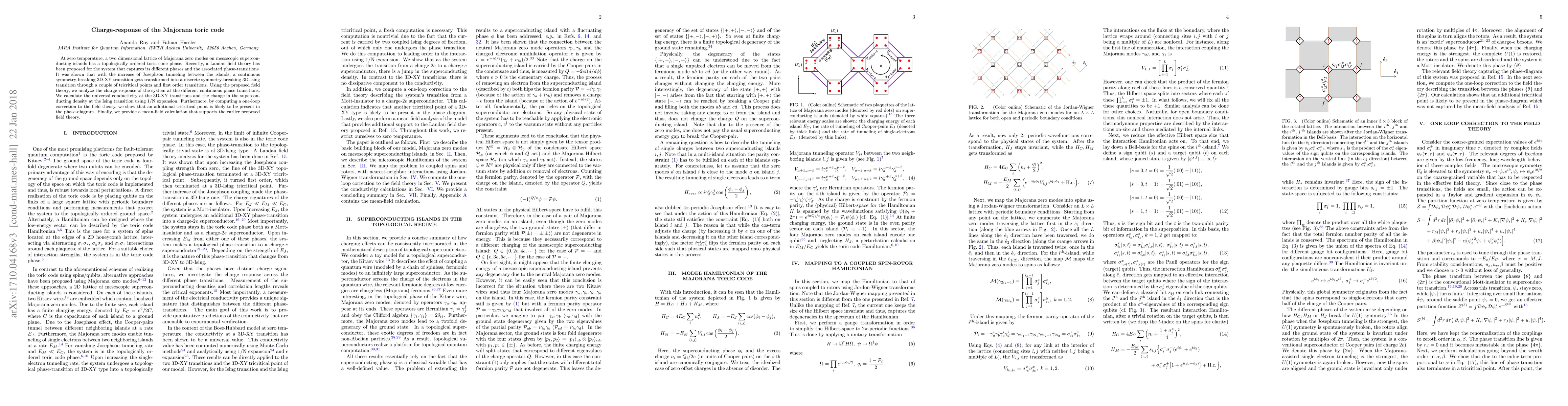 This paper investigates the charge response of a two-dimensional lattice of Majorana zero modes in a topologically ordered toric code phase, analyzing phase transitions using a proposed Landau field theory. It calculates universal conductivity and superconducting density changes, identifies additional tricritical points, and supports the theory with a mean-field calculation.