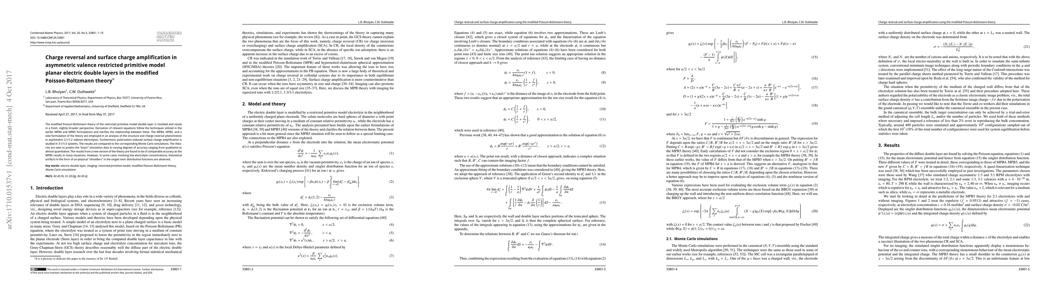 The modified Poisson-Boltzmann theory of the restricted primitive model double layer is revisited and recast in a fresh, slightly broader perspective. Derivation of relevant equations follow the techniques utilized in the earlier MPB4 and MPB5 formulations and clarifies the relationship between these. The MPB4, MPB5, and a new formulation of the theory are employed in an analysis of the structure and charge reversal phenomenon in asymmetric 2:1/1:2 valence electrolytes. Furthermore, polarization induced surface charge amplification is studied in 3:1/1:3 systems. The results are compared to the corresponding Monte Carlo simulations. The theories are seen to predict the "exact" simulation data to varying degrees of accuracy ranging from qualitative to almost quantitative. The results from a new version of the theory are found to be of comparable accuracy as the MPB5 results in many situations. However, in some cases involving low electrolyte concentrations, theoretical artifacts in the form of un-physical "shoulders" in the singlet ionic distribution functions are observed.