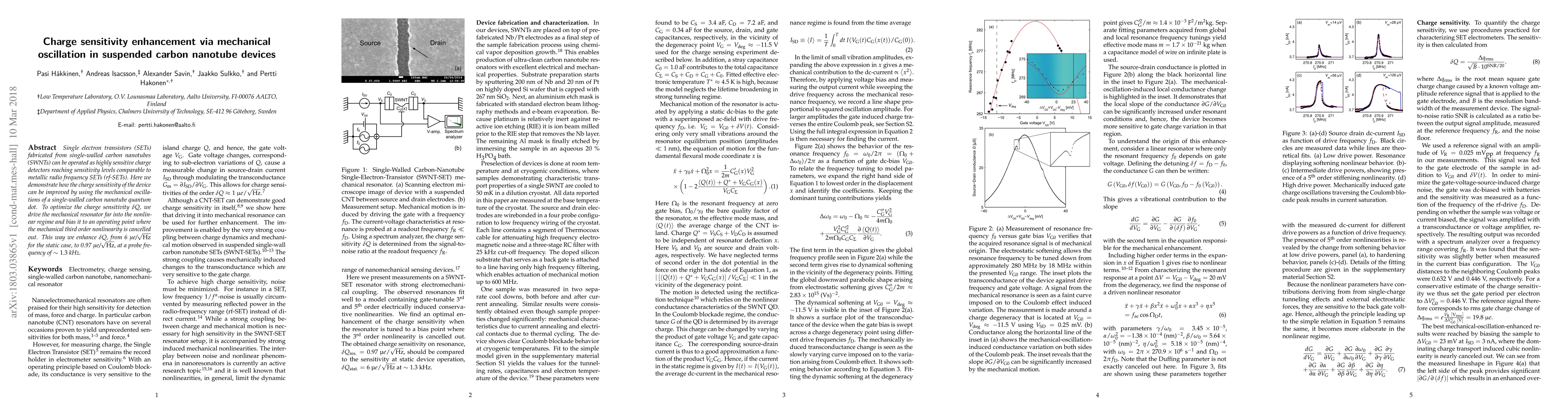 This paper demonstrates that mechanical oscillations in suspended single-walled carbon nanotube devices can enhance the charge sensitivity of single electron transistors, improving it from 6 $\mu e/\sqrt{\textrm{Hz}}$ to 0.97 $\mu e/\sqrt{\textrm{Hz}}$ by driving the resonator into a nonlinear regime and optimizing the operating point.