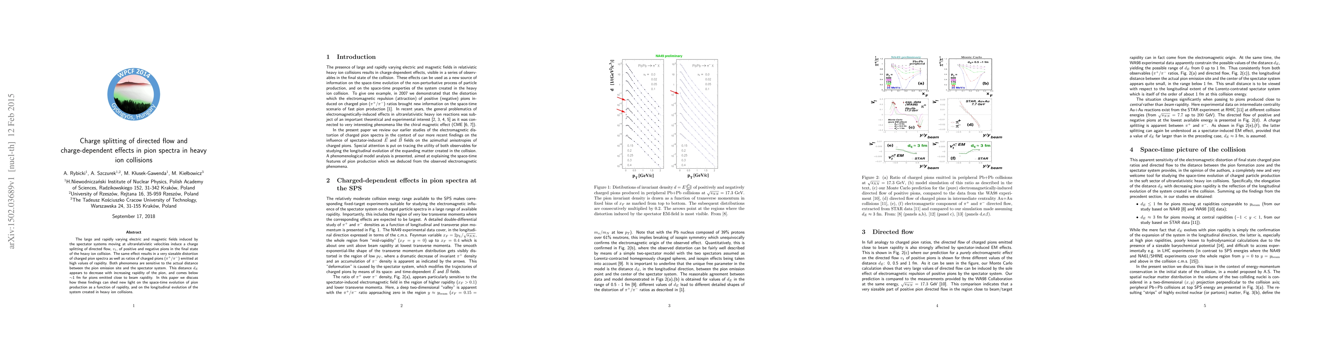 This paper investigates the charge splitting of directed flow and the distortion of charged pion spectra in heavy ion collisions, revealing that these effects are influenced by the distance between the emission site and the spectator system, which decreases with increasing pion rapidity. These findings provide insights into the space-time evolution of pion production and the longitudinal dynamics of the collision system.