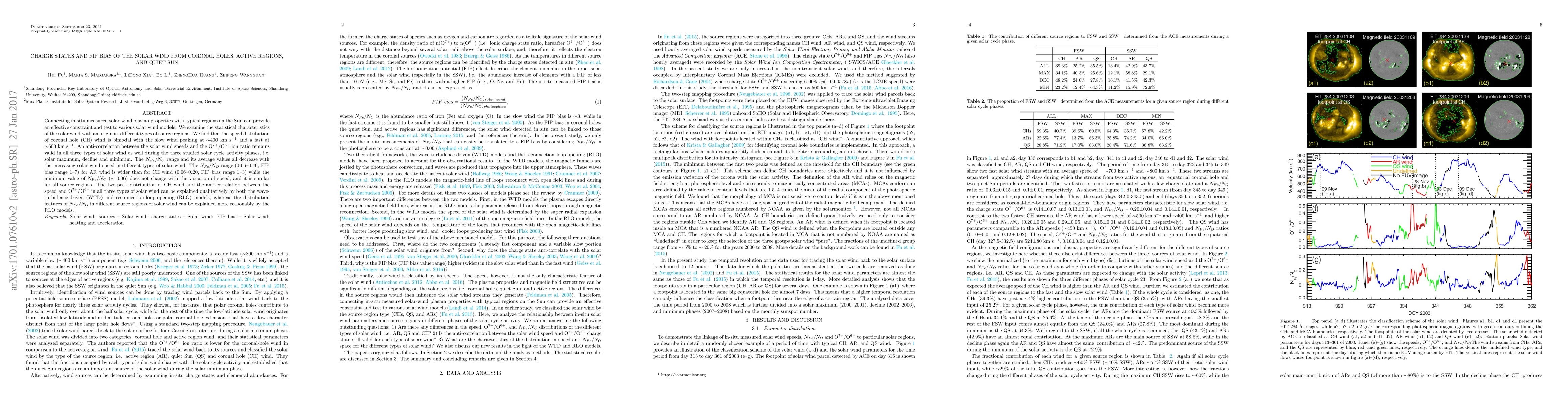 This study investigates the solar wind originating from coronal holes, active regions, and quiet sun, finding bimodal speed distributions in coronal hole wind and an anti-correlation between solar wind speed and the O7+/O6+ ion ratio across all regions. The N_Fe/N_O range and FIP bias decrease with increasing speed, with active region wind showing a wider range than coronal hole wind, suggesting different source mechanisms explained by wave-turbulence-driven and reconnection-loop-opening models.