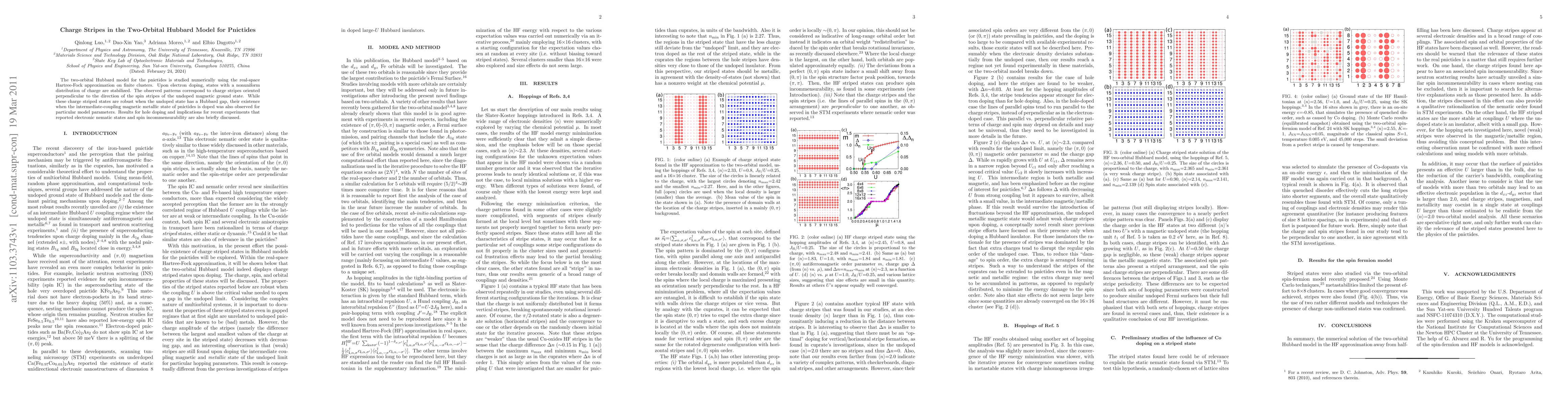 This research numerically investigates charge stripes in the two-orbital Hubbard model for pnictides using real-space Hartree-Fock approximation, finding that electron doping stabilizes nonuniform charge distributions forming stripes perpendicular to spin stripes. The study also observes these charge stripes in doped intermediate-coupling magnetic metallic states under certain conditions, with implications for recent experimental findings on electronic nematicity and spin incommensurability.