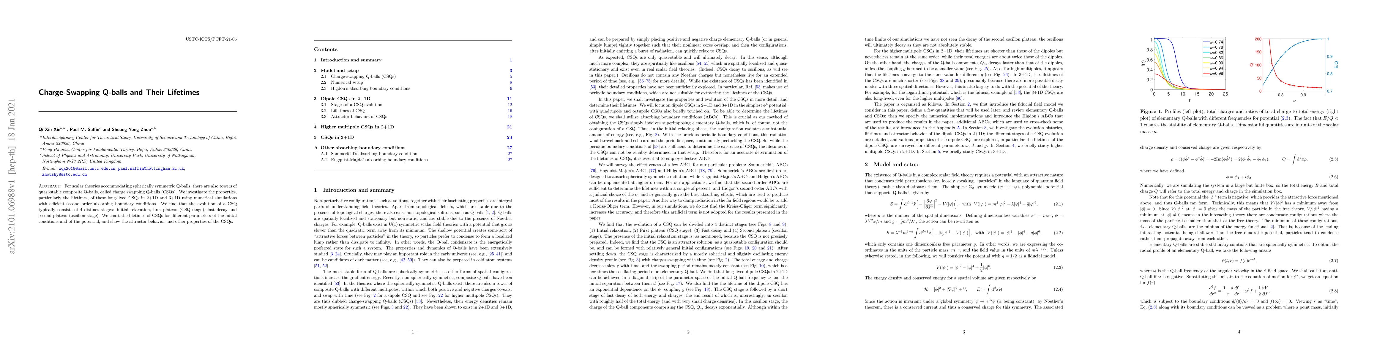 This paper investigates the properties and lifetimes of charge-swapping Q-balls (CSQs) in scalar theories using numerical simulations. The study reveals four distinct stages in CSQ evolution: initial relaxation, a CSQ stage, fast decay, and an oscillon stage, with detailed analysis of CSQ lifetimes under various initial conditions and potential parameters.