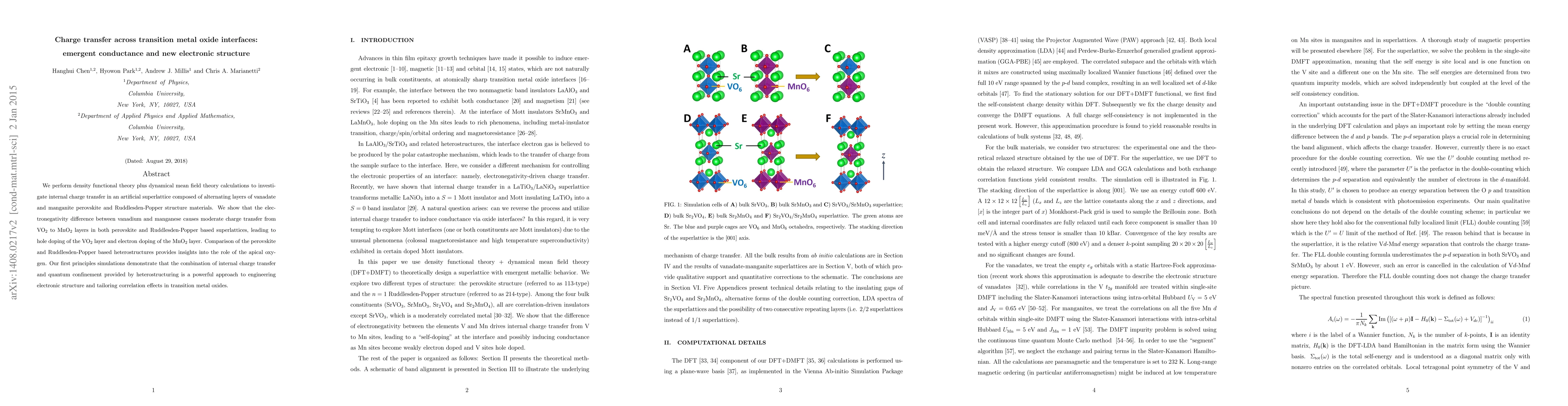 This paper investigates charge transfer in transition metal oxide superlattices using density functional theory and dynamical mean field theory, revealing significant electronegativity-driven charge transfer between vanadium and manganese layers, which leads to hole doping in vanadium oxide and electron doping in manganese oxide. The study highlights the role of apical oxygen and demonstrates the potential of heterostructuring for engineering electronic properties.