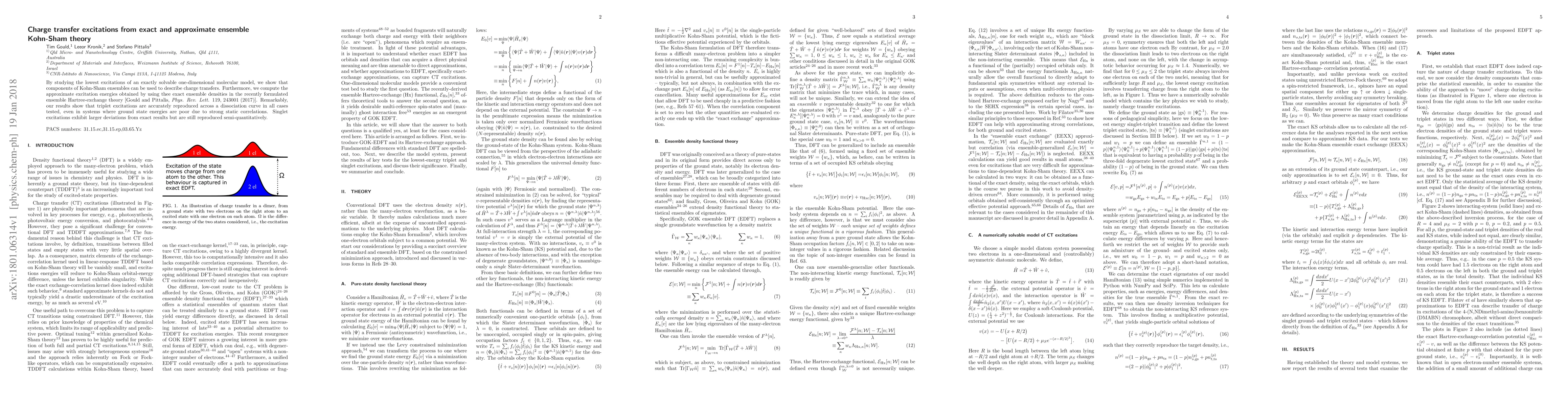 By studying the lowest excitations of an exactly solvable one-dimensional molecular model, we show that components of Kohn-Sham ensembles can be used to describe charge transfers. Furthermore, we compute the approximate excitation energies obtained by using thee exact ensemble densities in the recently formulated ensemble Hartree-exchange theory [Gould and Pittalis, Phys. Rev. Lett. 119, 243001 (2017)]. Remarkably, our results show that triplet excitations are accurately reproduced across a dissociation curve in all cases tested, even in systems where ground state energies are poor due to strong static correlations. Singlet excitations exhibit larger deviations from exact results but are still reproduced semi-quantitatively.