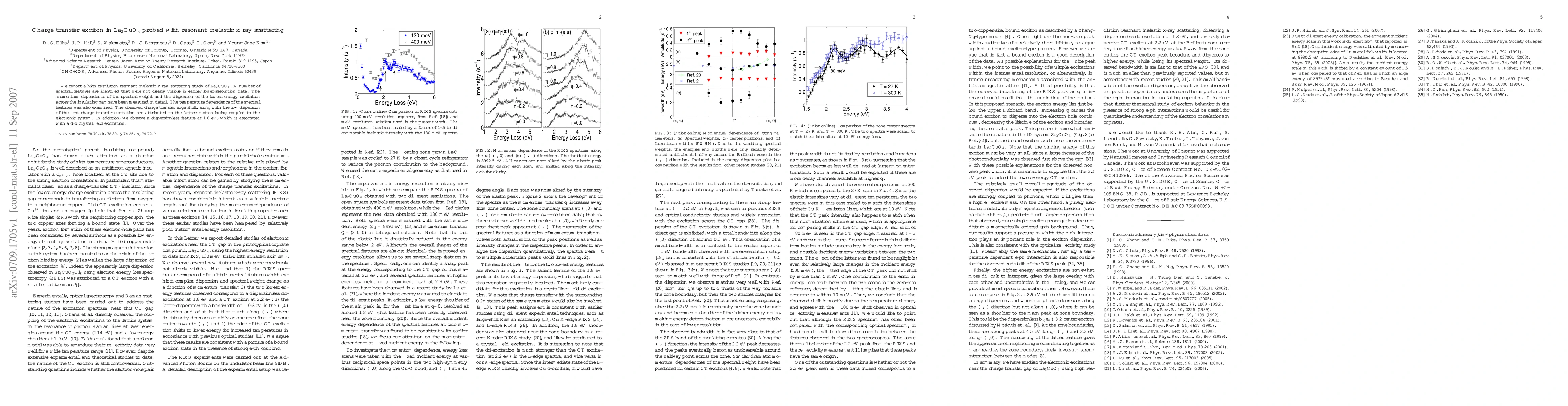 This study uses high-resolution resonant inelastic x-ray scattering to analyze La2CuO4, identifying new spectral features, including a low-dispersion charge-transfer exciton linked to lattice motion, and a dispersionless d-d crystal field excitation at 1.8 eV.