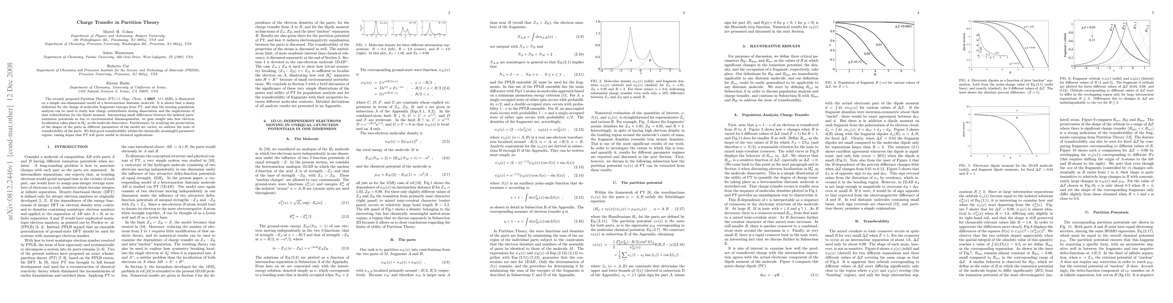 The recently proposed Partition Theory (PT) [J.Phys.Chem.A 111, 2229 (2007)] is illustrated on a simple one-dimensional model of a heteronuclear diatomic molecule. It is shown that a sharp definition for the charge of molecular fragments emerges from PT, and that the ensuing population analysis can be used to study how charge redistributes during dissociation and the implications of that redistribution for the dipole moment. Interpreting small differences between the isolated parts' ionization potentials as due to environmental inhomogeneities, we gain insight into how electron localization takes place in H2+ as the molecule dissociates. Furthermore, by studying the preservation of the shapes of the parts as different parameters of the model are varied, we address the issue of transferability of the parts. We find good transferability within the chemically meaningful parameter regime, raising hopes that PT will prove useful in chemical applications.