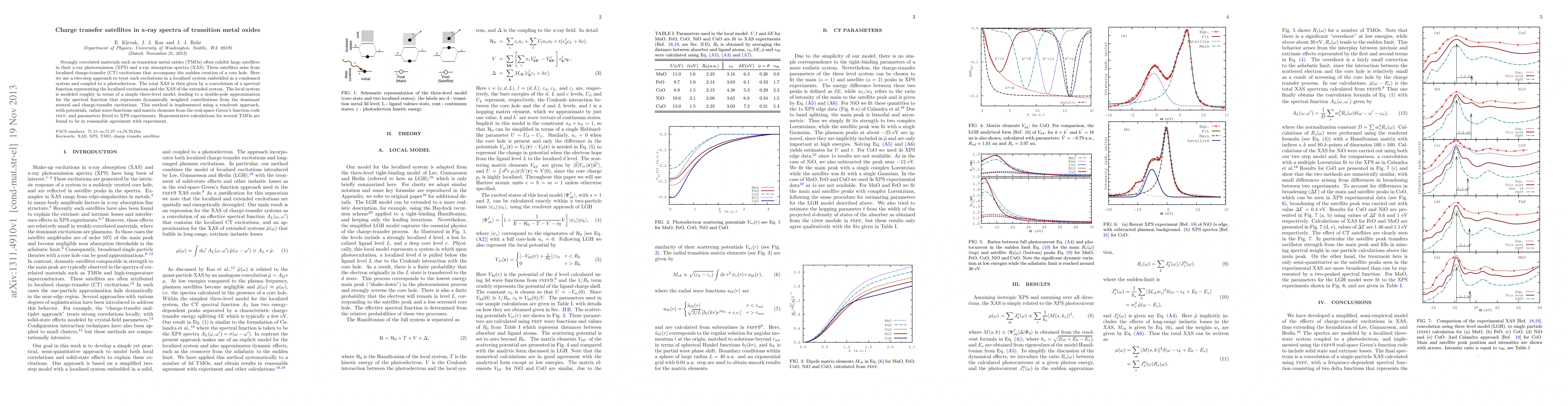 This paper explores the origin of charge transfer satellites in x-ray spectra of transition metal oxides, attributing them to localized charge-transfer excitations. The authors develop a two-step approach to model these excitations, achieving good agreement with experimental x-ray photoemission and absorption spectra.