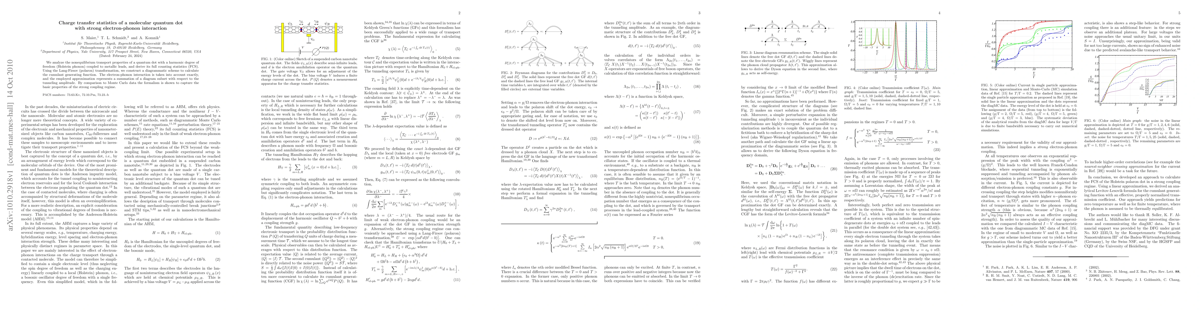 This paper investigates the nonequilibrium transport in a quantum dot with strong electron-phonon interaction, deriving its full counting statistics. The Lang-Firsov transformation is used to account for the interaction exactly, and the results are validated against Monte Carlo simulations.