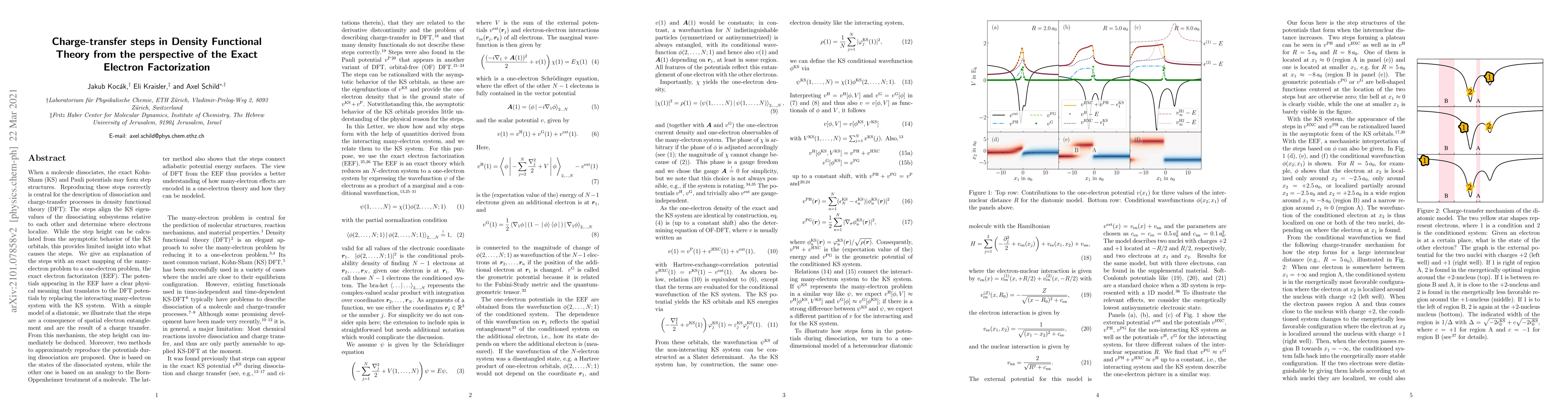 This paper explains how charge-transfer steps in molecules can be accurately described using Density Functional Theory (DFT), and introduces an exact electron factorization method to model these steps.