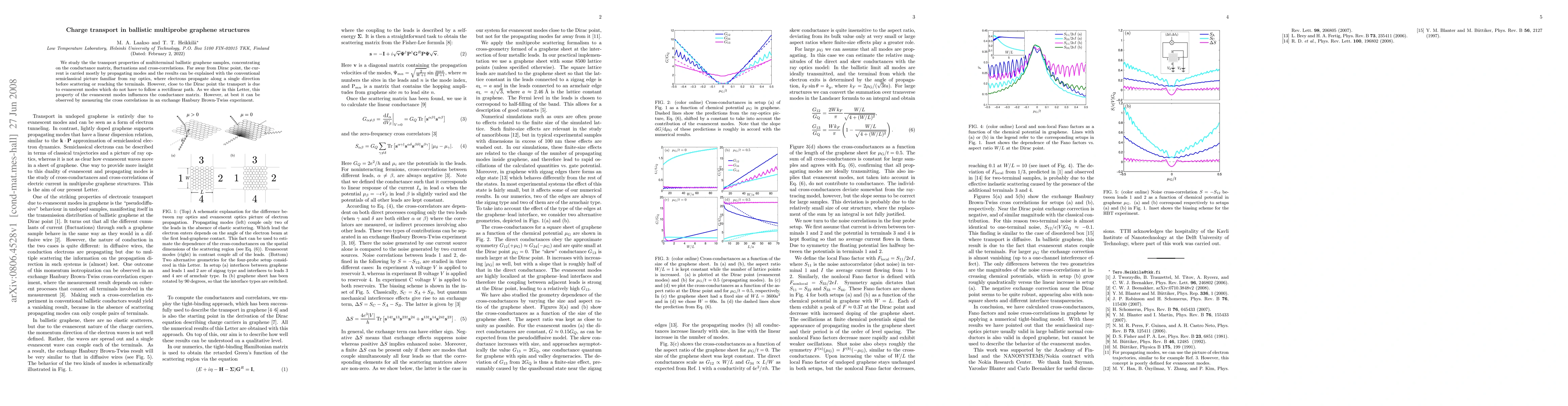 This paper investigates the transport properties in multiterminal ballistic graphene, revealing that far from the Dirac point, current is carried by propagating modes following a semiclassical path, while near the Dirac point, evanescent modes influence the conductance matrix, observable via cross-correlations in an exchange Hanbury Brown-Twiss experiment.