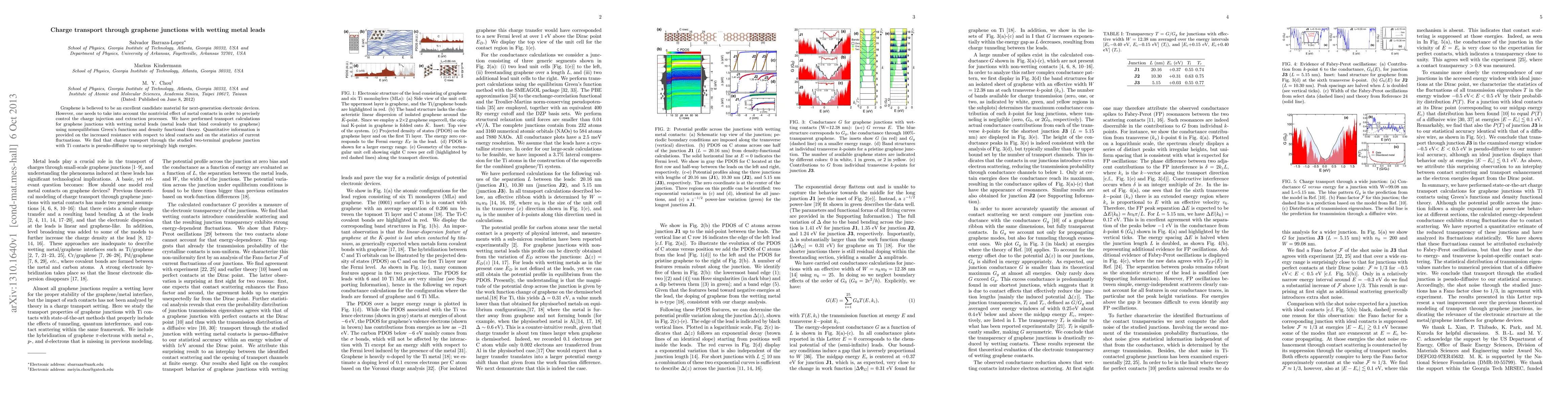 Graphene is believed to be an excellent candidate material for next-generation electronic devices. However, one needs to take into account the nontrivial effect of metal contacts in order to precisely control the charge injection and extraction processes. We have performed transport calculations for graphene junctions with wetting metal leads (metal leads that bind covalently to graphene) using nonequilibrium Green's functions and density functional theory. Quantitative information is provided on the increased resistance with respect to ideal contacts and on the statistics of current fluctuations. We find that charge transport through the studied two-terminal graphene junction with Ti contacts is pseudo-diffusive up to surprisingly high energies.