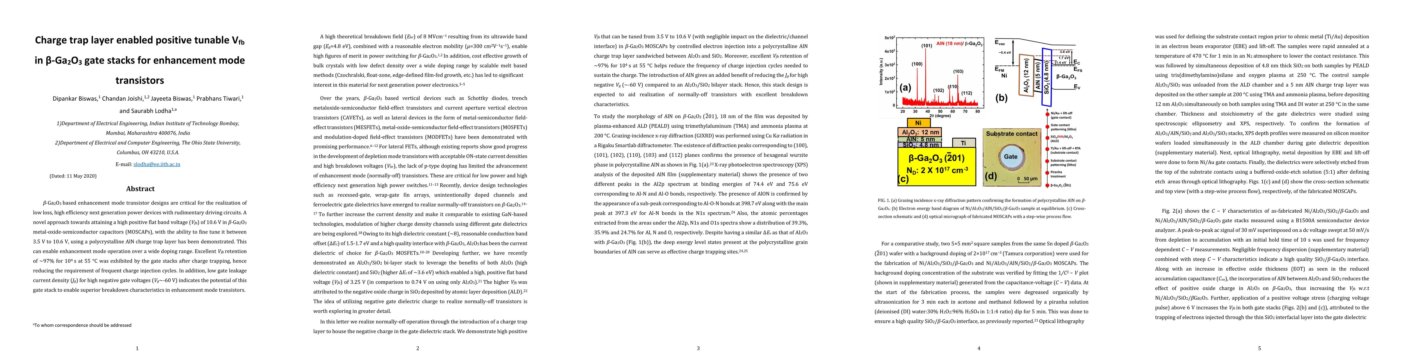 $\beta$-Ga$_{2}$O$_{3}$ based enhancement mode transistor designs are critical for the realization of low loss, high efficiency next generation power devices with rudimentary driving circuits. A novel approach towards attaining a high positive flat band voltage (V$_{fb}$) of 10.6 V in $\beta$-Ga$_{2}$O$_{3}$ metal-oxide-semiconductor capacitors (MOSCAPs), with the ability to fine tune it between 3.5 V to 10.6 V, using a polycrystalline AlN charge trap layer has been demonstrated. This can enable enhancement mode operation over a wide doping range. Excellent V$_{fb}$ retention of ${\sim}$97% for 10$^{4}$ s at 55 $^{\circ}$C was exhibited by the gate stacks after charge trapping, hence reducing the requirement of frequent charge injection cycles. In addition, low gate leakage current density (J$_{g}$) for high negative gate voltages (V$_{g}$${\sim}$-60 V) indicates the potential of this gate stack to enable superior breakdown characteristics in enhancement mode transistors.