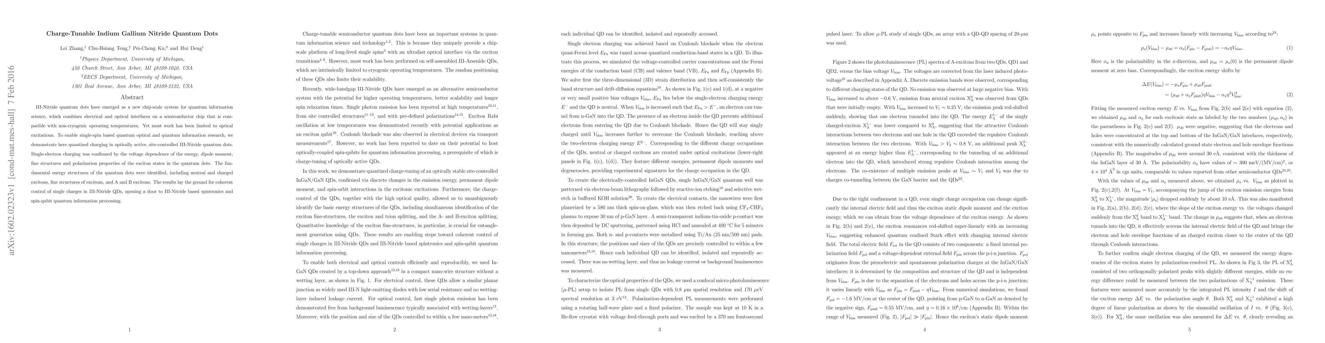 This paper demonstrates quantized charging in optically active, site-controlled III-Nitride quantum dots, confirming single-electron charging through voltage-dependent exciton properties. The findings pave the way for coherent control of single charges, enabling III-Nitride based spintronics and quantum information processing.