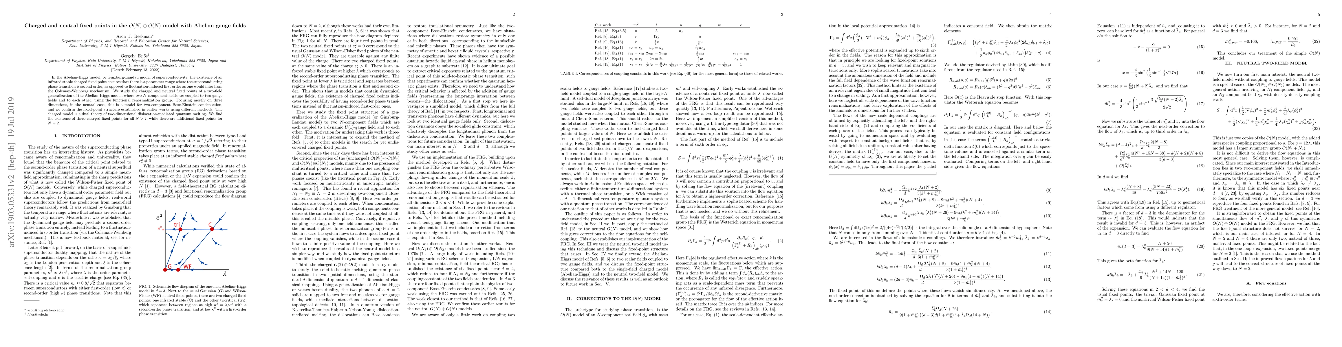 This paper investigates the charged and neutral fixed points in a two-field generalization of the Abelian-Higgs model, confirming earlier results for neutral fixed points in three dimensions and identifying three charged fixed points for N>2, with additional points for N=2. The study uses the functional renormalization group method.