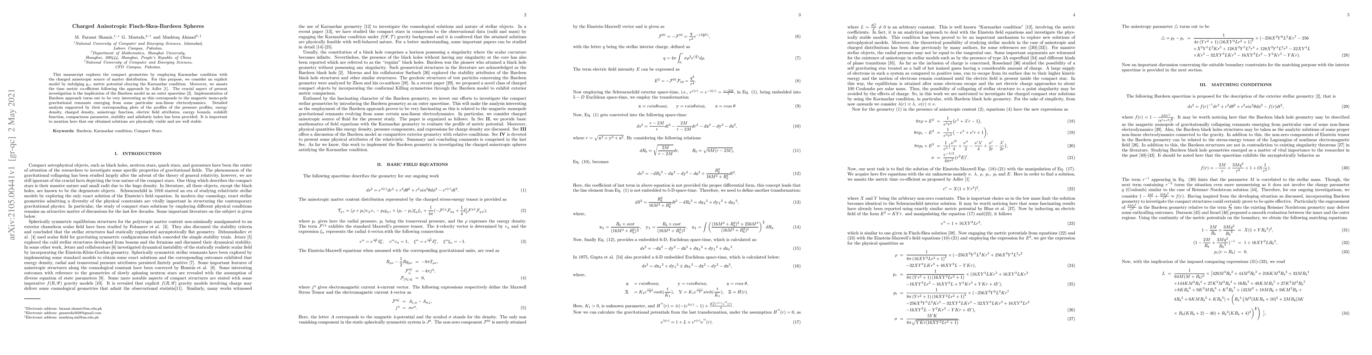 This paper investigates charged anisotropic geometries using the Karmarkar condition and the Bardeen model, focusing on the $\mathrm{g}_{rr}$ metric potential. It provides detailed analyses of pressure profiles, energy density, and stability, concluding that the solutions are physically viable and stable.