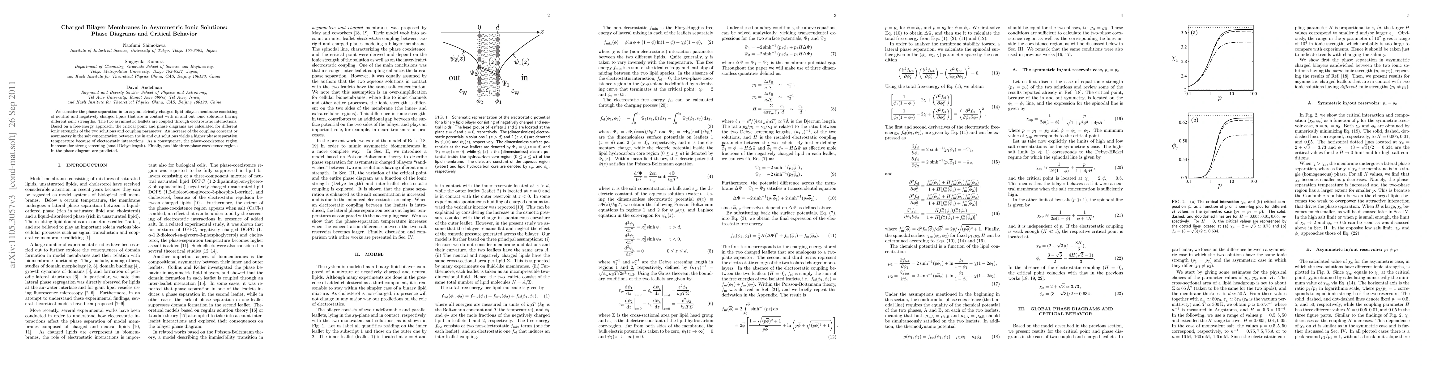 This paper investigates the phase separation in asymmetrically charged lipid bilayer membranes in contact with ionic solutions of differing strengths, focusing on the critical behavior and phase diagrams. The study reveals that increased coupling or salt concentration asymmetry raises the phase separation temperature due to electrostatic interactions, leading to broader phase-coexistence regions and potential three-phase coexistence under strong screening conditions.