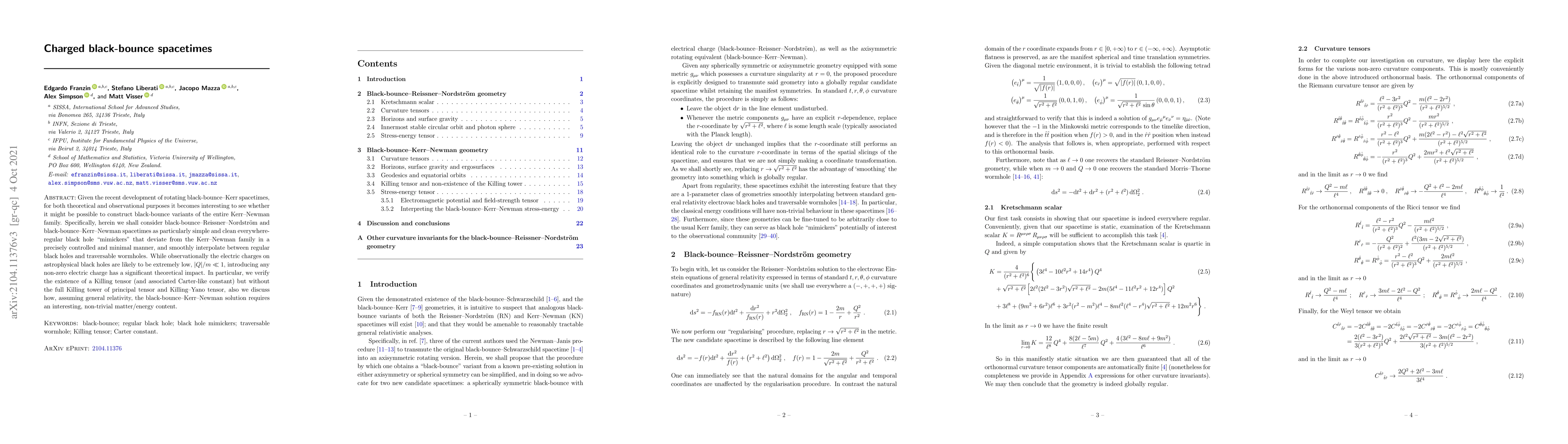 This paper explores charged black-bounce spacetimes, specifically focusing on black-bounce-Reissner-Nordström and black-bounce-Kerr-Newman variants. It investigates their theoretical implications and the existence of a Killing tensor, while noting the non-trivial matter/energy content required for these solutions.