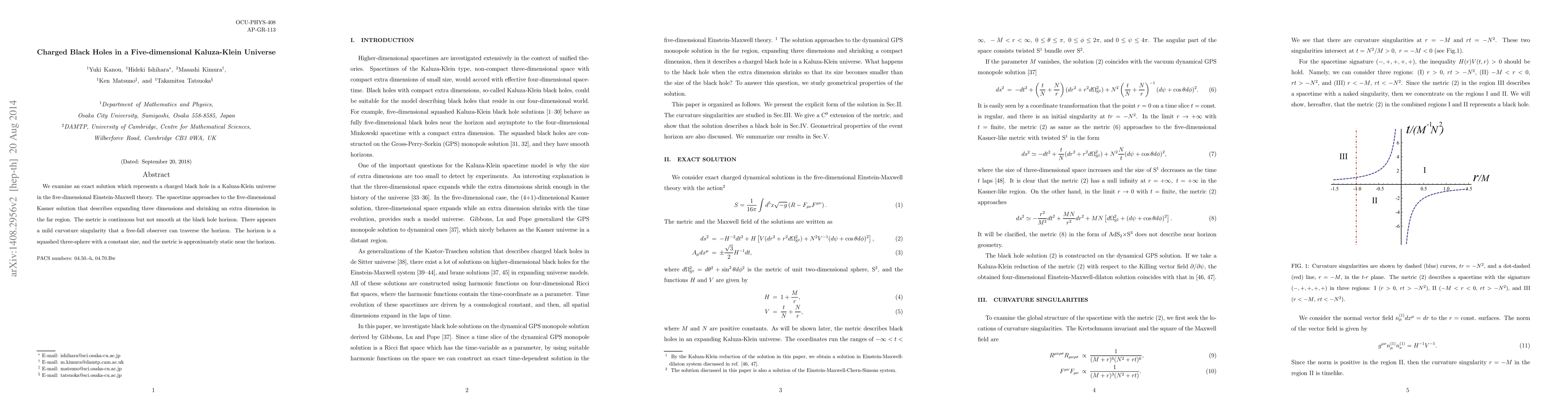 This paper presents an exact solution for a charged black hole in a five-dimensional Kaluza-Klein universe within Einstein-Maxwell theory, featuring a horizon that allows free-fall observers to traverse it, and an asymptotically Kasner solution with expanding three dimensions and a shrinking extra dimension. The horizon forms a squashed three-sphere with constant size and an approximately static metric near it.