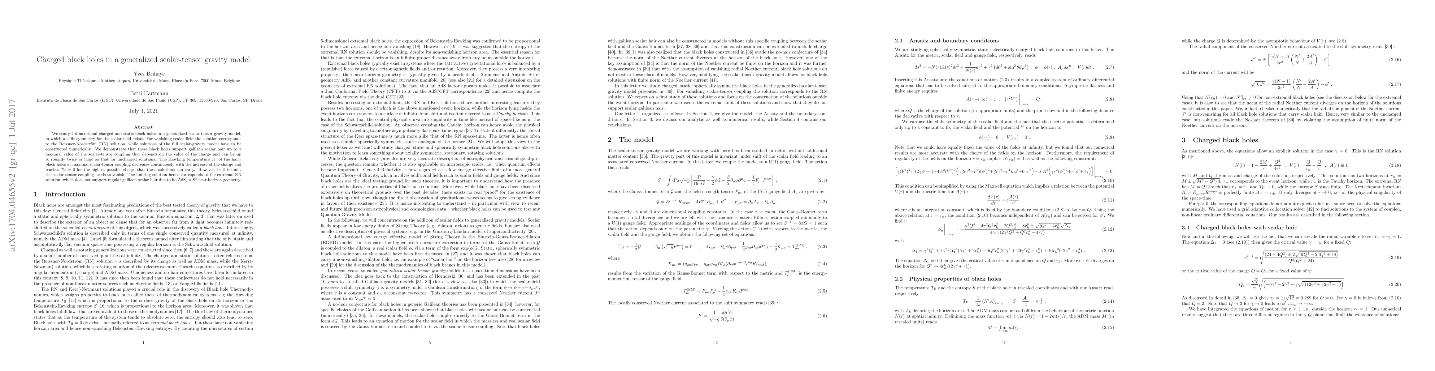 This paper investigates charged, static black holes in a generalized scalar-tensor gravity model, revealing that these black holes can support scalar hair up to a maximal coupling dependent on charge. The Hawking temperature decreases with increasing charge, reaching zero for the maximally charged state, which corresponds to the extremal Reissner-Nordström solution.