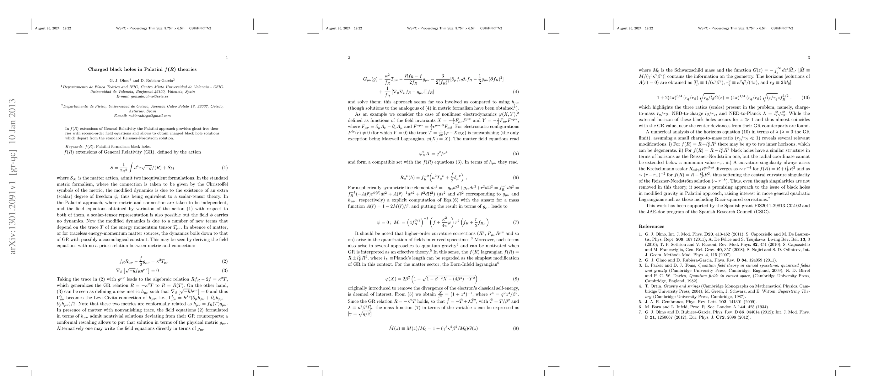 Summary: This paper explores charged black hole solutions in Palatini $f(R)$ theories, which provide ghost-free extensions of General Relativity with second-order field equations, leading to black hole models that differ from the conventional Reissner-Nordström solution.