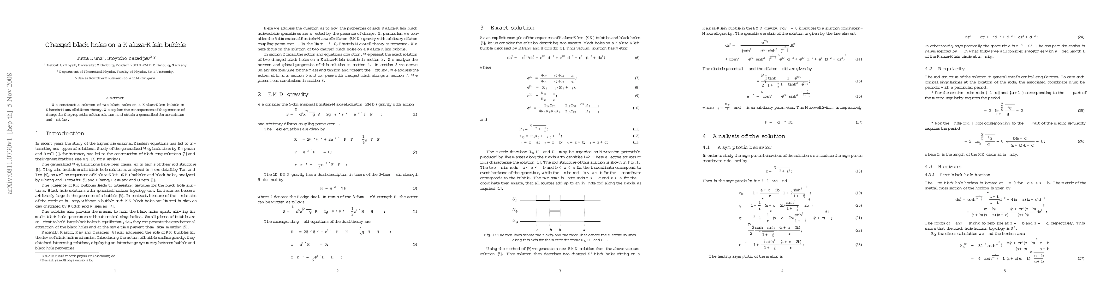 We construct a solution of two black holes on a Kaluza-Klein bubble in Einstein-Maxwell-dilaton theory. We explore the consequences of the presence of charge for the properties of this solution, and obtain a generalized Smarr relation and first law.