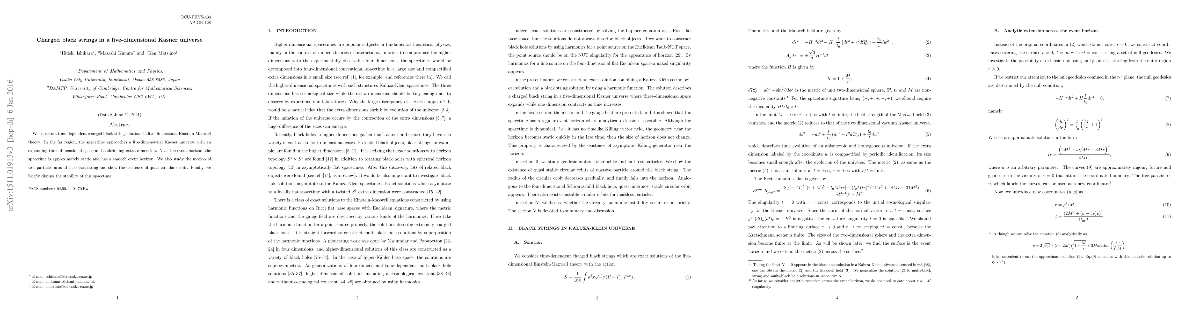 Researchers found charged black string solutions in 5D Einstein-Maxwell theory, which approach a Kasner universe with an expanding 3D space and shrinking extra dimension.