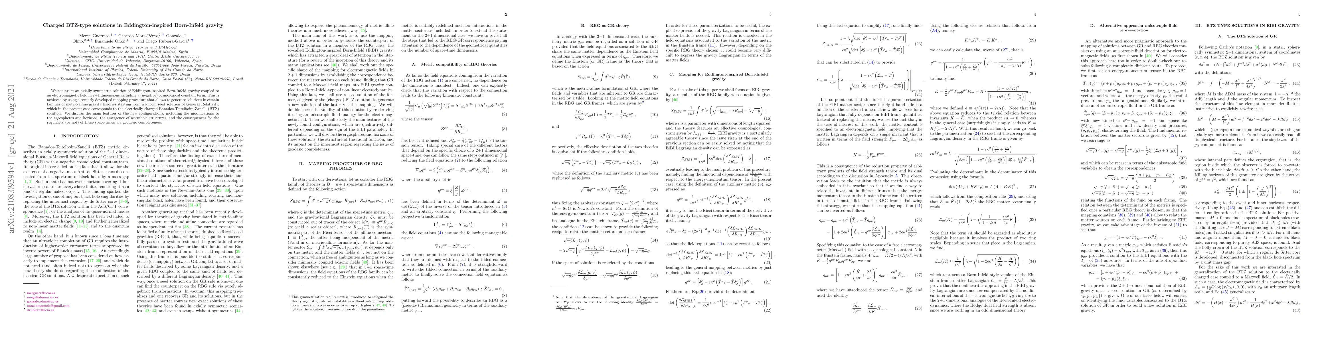 This paper constructs charged BTZ-type solutions in Eddington-inspired Born-Infeld gravity using a mapping procedure from known General Relativity solutions. It explores modifications to ergospheres, horizons, and the emergence of wormhole structures, assessing the regularity of these new space-times through geodesic completeness.
